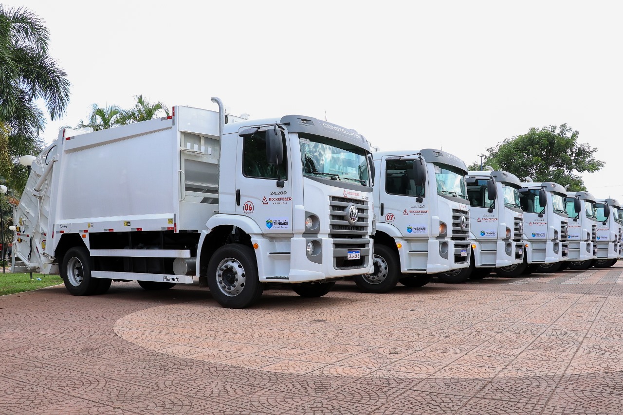 Serão oito caminhões, sendo um com varredeira mecânica, cuja capacidade é de 8m³ para limpeza, e sete compactadores para coleta.