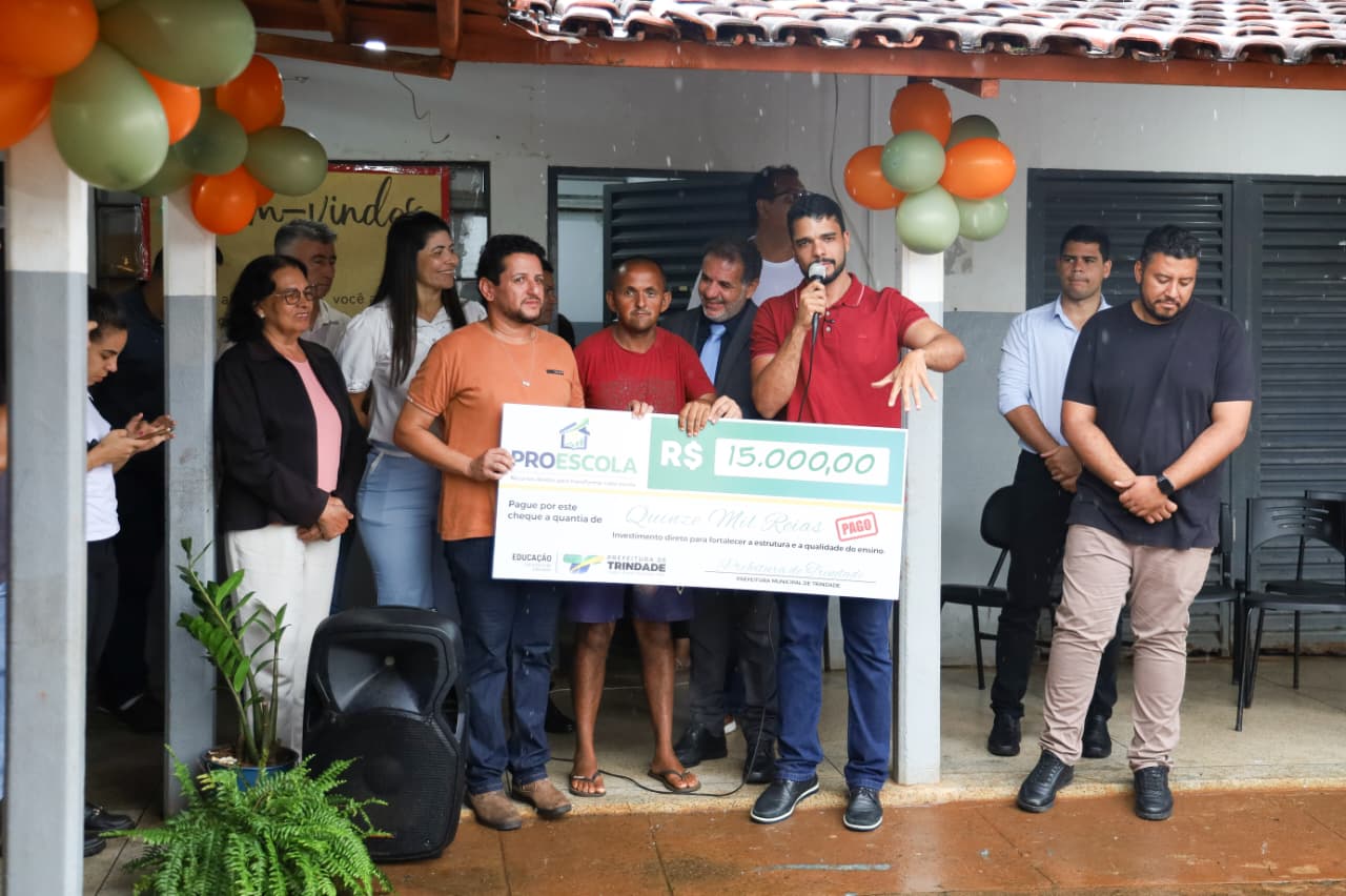 Jessi, também mãe de aluno, valoriza o impacto visual e prático da ação nas escolas: “É tão bom ver a escola todo mundo igualzinho, uniformizado bonitinho, com os materiais, fico muito feliz com esse cuidado da prefeitura de Trindade”.