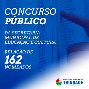Prefeito Jânio Darrot anuncia convocação de 162 classificados no cadastro de reserva do concurso público da Secretaria Municipal de Educação e Cultura de Trindade. Confira lista completa dos nomeados. O prefeito Jânio Darrot fez o compromisso e consolida a convocação dos 162 classificados no cadastro de reserva do concurso público da Secretaria Municipal de Educação e Cultura, de acordo com o decreto nº 975/18, de 22 de outubro de 2018. “Vamos, sempre, priorizar o ensino de qualidade”, afirma ele. Veja relação dos nomeados para exercer os cargos efetivos de Auxiliar Administrativo, Auxiliar de Serviços Gerais, Oficial de Serviços Gerais e Monitor de Educação Infantil. #PrefeituraDeTrindade #SecretariaDeEducaçãoECultura #Convocação#CadastroDeReserva #ConcursoPúblico CLASSIFICAÇÃO……………NOME -> AUXILIAR ADMINISTRATIVO 56 LIVIA DA SILVA PRADO MOREIRA 57 JOSIANE FARIAS DE MACEDO MAGALHAES 58 CLEIDE DOS REIS FERREIRA 59 WANDERSON RODRIGUES CORREIA 60 DANIEL NUNES DE OLIVEIRA 61 KAREN NEVES DA SILVA 62 LUIZ FERNANDO GOMES CARVALHO 63 VICTORIA COSTA DA SILVA 64 JOAO VICTOR CAMPOS GONDIM 65 MICHAEL VINICIOS PEREIRA 66 LARISSA APARECIDA ROCHA GODIM 67 GABRIEL PIRES SOARES DO CARMO 68 GIANCARLLO FONSECA QUEIROZ 69 CARLOS EDUARDO MARQUES SILVA 70 LUCAS DIAS GOMES 71 JAKELLINE DA SILVA MACEDO CUNHA 72 RANGEL RODRIGUES MARIANO 73 ISAAC SANTANA SILVA 74 LUIZ CARLOS BORGES JUNIOR 75 DIOGO MAGALHAES DE PAIVA 76 CINTYA APARECIDA DE LIMA MARQUES E SOUZA 77 MOZART OLIVEIRA BRAGA 78 RAFAEL RODRIGUES MIRANDA. -> AUXILIAR DE SERVIÇOS GERAIS 21 FABIANI PINHEIRO BARBOSA DIAS 22 JESIEL TEIXEIRA MARTINS 23 ANA PAULA CARDOSO 24 DAYANE APARECIDA TORRES SALES 25 TATIANE FABRICIA LOUBACH 26 RAUL BORGES DA SILVA. -> OFICIAL DE SERVIÇOS GERAIS 101 SONIA DE OLIVEIRA VENANCIO 102 DEBORA PEREIRA DA SILVA BORGES 103 NEIDE ROBERTA DE ARAUJO 104 PAULO ANDRE DE MIRANDA BORGES 105 RAQUEL ALEIXO SILVA 106 KELLY CRISTINA HIPOLITO PITA 107 HELBER DE MIRANDA BORGES 108 GABRIELINA RODRIGUES ALVES 109 DANUBIA PAULA DOS SANTOS DAMASCENO 110 MEIRE JOSE DE SOUZA 111 RICARDO SOUZA DE ALECRIM 112 ELIANE VIEIRA DE SOUSA 113 SILMARA PEREIRA CAMARA 114 MARCIO SILVA FREITAS. 115 VANUZA FERREIRA DE SOUZA 116 MARIA DO SOCORRO NOGUEIRA DA SILVA 117 MARIA CRISTINA DE SOUSA E SOUZA 118 WANDER ALVES DA SILVA 119 WALLISSON LOURENCO ROSA 120 PRISCILA RAMOS DE MENEZES 121 FERNANDO BALDUINO ALVES 122 ARILVA SILVA DO ESPIRITO SANTO 123 NARA RUBIA LOPES SATURNINO PINHO 124 ANDERSON PEREIRA DOS SANTOS 125 MILLENA DOS SANTOS VEIGA 126 JAKELYNE RAFAELY DE OLIVEIRA GOMES 127 ISRAEL GONCALVES MARTINS 128 LUDIMILA RODRIGUES PEREIRA 129 PAULA CAROLINA MENDES 130 RENATA CRISTINA SALAZAR DE FREITAS 131 MARIANA PEREIRA DOS SANTOS 132 ANDRIVA AMANDA VILELA PEREIRA 133 JONAS GOMES CARVALHO 134 JOSE ADAILTON MENDES 135 FRANCIVALDO ALVES DOS SANTOS 136 JOEL ALVES DE SOUSA 137 ANTONIA MARITANIA SIMIAO DE OLIVEIRA 138 PAULO HENRIQUE CLEMENTE DE SOUZA 139 ALINE SANTOS OLIVEIRA MARQUES 140 WESLENE CARDOSO DOS ANJOS 141 MISLAINE SOARES GARCIA 142 RONALDO FERREIRA NASCIMENTO MIRANDA 143 LEIDINAURA DE SOUSA SILVA 144 NAYARA ALVES DE ANDRADE 145 CARLOS JOSE DOMINGUES FILHO 146 THAYS ROCHA CARNEIRO 147 ADRIANO JOSE DE ALMEIDA CAVALCANTE 148 MILLIANE CRISTINNE DE OLIVEIRA LOPES 149 MAYARA LOURRUANY DE ABREU 150 KARINE ALVES DE OLIVEIRA 151 GHEAN CARLOS DOMINGUES 152 TULIO HENRIQUE LOPES DE SOUZA 153 DAVID GALDINO DA SILVA 154 WANDERSON LOPES DE OLIVEIRA 155 GUSTAVO TOLSTOI FLAUBERT MARTINS 156 DAGMAR CORREA DUARTE 157 MAURO LUIZ DE BRITO 158 MARCIA REGINA BATISTA MORAES GUIMARAES 159 GLEICY SPERANDIO 160 DALIMAR LELES DA SILVA 161 ALEX ALVES DOS SANTOS LIMA 162 PAULO LUIZ SOARES JUNIOR 163 JOAQUIM JUNIOR PEREIRA DE SA 164 ARETUZE DEJAINE BORGES VIEIRA 165 WANESSA WILLIAN DIAS ALVES GARCIA 166 CRISTIANO AFONSO DE JESUS 167 FABIO MEDEIROS COTRIM 168 VALDEIR LEITE DE MENEZES 169 FATIMA PINHEIRO DE MORAIS 170 ANA PAULA DE VASCONCELOS 171 ELIANGELA DE ARAUJO SANTOS 172 MIRIA NUNES CAMPOS VIEIRA 173 FRANCIELE BATISTA DA SILVA 174 LEONARDO GUILARDI 175 ANGELO COSTA CAMPOS 176 CHRISTIELY DE SOUSA FERREIRA 177 MATEUS MIGUEL SOARES. -> MONITOR DE EDUCAÇÃO INFANTIL 106 MIRIAN BARBOSA DE MORAIS MARTINS 107 FRANCIELLE DOS SANTOS SOARES ALEIXO 108 MARCO RANGEL BALACO DE SOUSA 109 ISABEL CRISTINA FERREIRA LIMA 110 SUZANE EVANGELISTA VASCONCELOS 111 ANNE KAROLINY RODRIGUES DE PAULA 112 WANESSA ROSA DA COSTA 113 SOLANGE SOARES RAMOS 114 LUDIMILA FERNANDES VALADAO 115 CAMILLA ALVES CARDOSO 116 JORDANA DE OLIVEIRA 117 ELIENE RAMOS DE MORAIS PAULA 118 CONSUELO DE FATIMA RODRIGUES 119 PATRICIA MIRTES NEVES 120 ANIELE CAROLINA OLIVEIRA LEMES 121 PEDRO HENRIQUE FERREIRA 122 JOAO MARCOS FERREIRA GOMES 123 CINTIA LIMA DOS SANTOS 124 HAMILTON LUIZ DE PAULA 125 BEATRIZ DE CASSIA CAMARGO BARBOSA 126 NATALY JORDANA NEVES LOPES 127 ANDRE LUIS PESSOA DIAS. 128 TELMA LIMA MARQUES 129 MARIZA SARDINHA DE JESUS RIBEIRO 130 MARIA ILZA DE MORAIS 131 DENISE DA SILVA MARQUES RIBEIRO 132 RAIANY GOMES DE PAULA 133 JANE KELLY AMANDA DE LIRA ROQUE 134 ERICA ROSA BATISTA CARDOSO 135 DENISE RODRIGUES DE OLIVEIRA 136 NUBIA EUGENIA XAVIER DO VALE 137 PATRICIA BATISTA PINHEIRO ARAUJO 138 LEYLA FERNNANDA VIEIRA LIMA 139 DANUBIA RODRIGUES DE OLIVEIRA 140 MARIA APARECIDA LEMES DOS SANTOS CAETANO 141 MARTA ALMEIDA PONTE 142 BIANCA MOREIRA XAVIER DE SOUZA 143 MANOEL VINICIUS OLIVEIRA ARRUDA 144 ALINE ABRAO SILVA E FREITAS 145 PRISCYLA AGNES JORGE DOS SANTOS PETRELLI 146 ISABELLA GOMES ASSIS 147 ROZANE DE JESUS SILVA QUINTINO 148 CLAUDILEIA TAVARES GOMES 149 FRANCIELE CRISTINE DA SILVA 150 PAULA CRISTINA PINHEIRO COSTA CASTRO DE FREITAS 151 FREDERICO GONCALVES DA COSTA 152 DEBORA SOARES DE ANDRADE 153 THAYNARA DAMACENO DE SOUSA 154 MARIANA MENDES CASTRO CAMPOS 155 JURANDIR BATISTA DE SOUZA 156 CRISTIANE PATRICIA DA SILVA NUNES 157 LARISSA APARECIDA DA SILVA SOARES GOMES 158 JESSICA LORRANE BERNARDES DE MIRANDA 159 ALESSANDRA SANTOS SOARES PINTO 160 DANIELA TANAKA VIEIRA MARQUES.