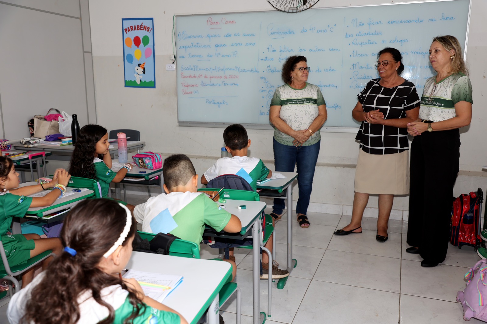 Prefeito e equipe percorrem unidades educacionais para desejar a estudantes e professores um 2024 de muito aprendizado e conquistas. “Ano novo, esperanças renovadas”, destaca diretora da Escola Municipal Almiro Pereira, Josianne Maia