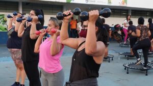 A maquiadora Laira San, ao longo das aulas do Mexa-se, que acontecem perto de sua casa, no setor Monte Sinai, sai dos 98kg para 89kg. “A saúde é muito importante e foi um projeto muito bom para a população”, ressalta.