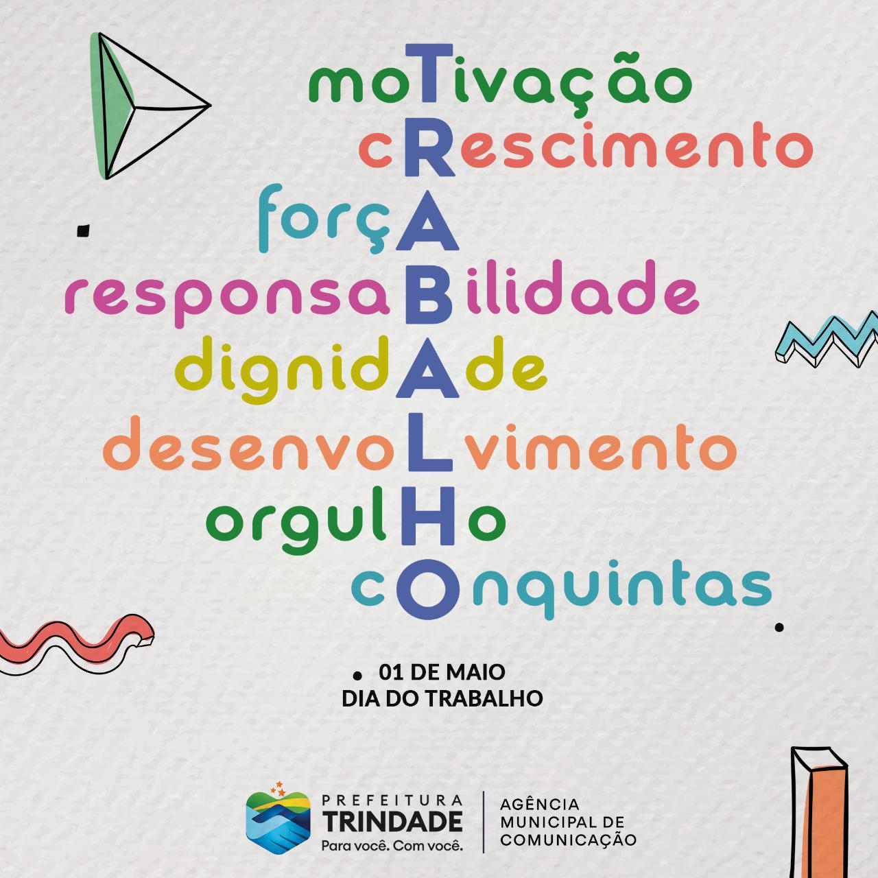 Hoje a Prefeitura de Trindade homenageia todos os profissionais que batalham diariamente em busca do sustento e crescimento.