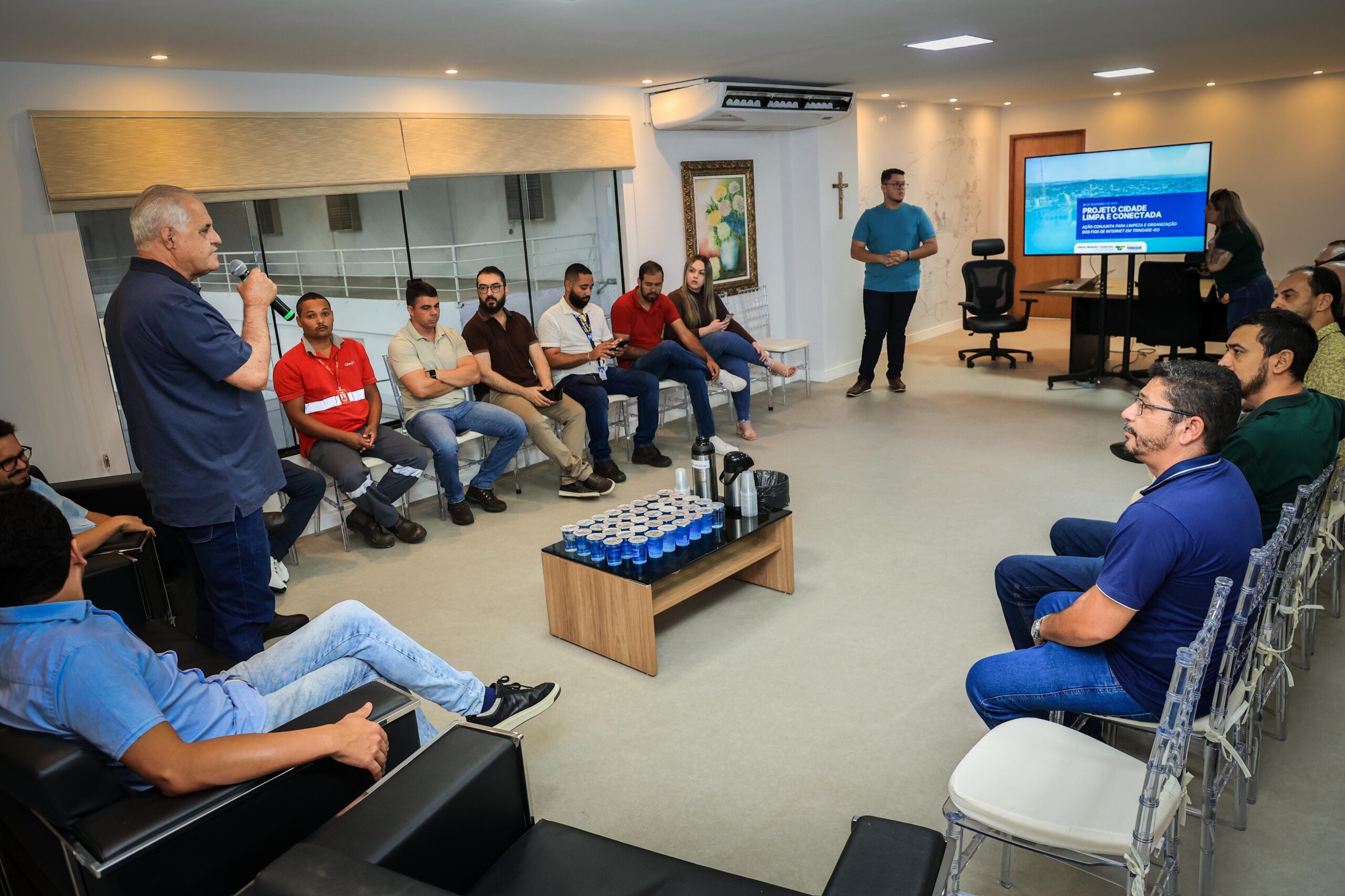 A reunião de abertura da iniciativa ocorreu nesta quarta-feira (06/11) no gabinete do prefeito Marden Júnior. O encontro contou com a presença do vice-prefeito Juan Darrot, secretários Jean Carlos (Ciência, Inovação e Tecnologia), Gustavo Queiroz (Infraestrutura e Comunicação Social), representantes das empresas provedoras de internet e da Equatorial Energia.