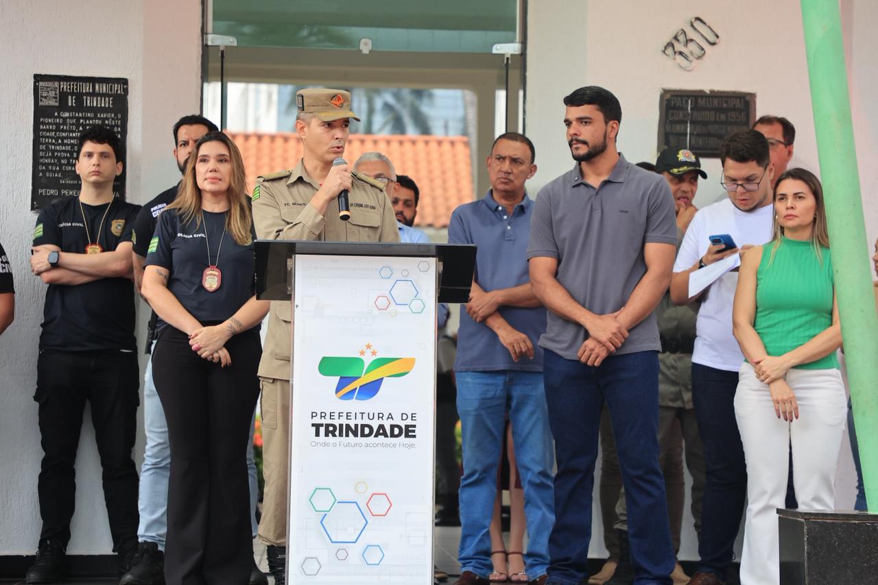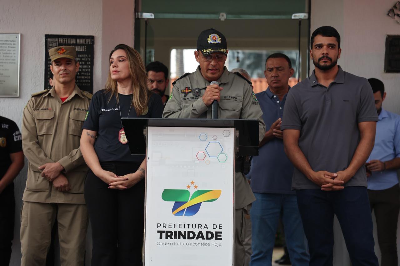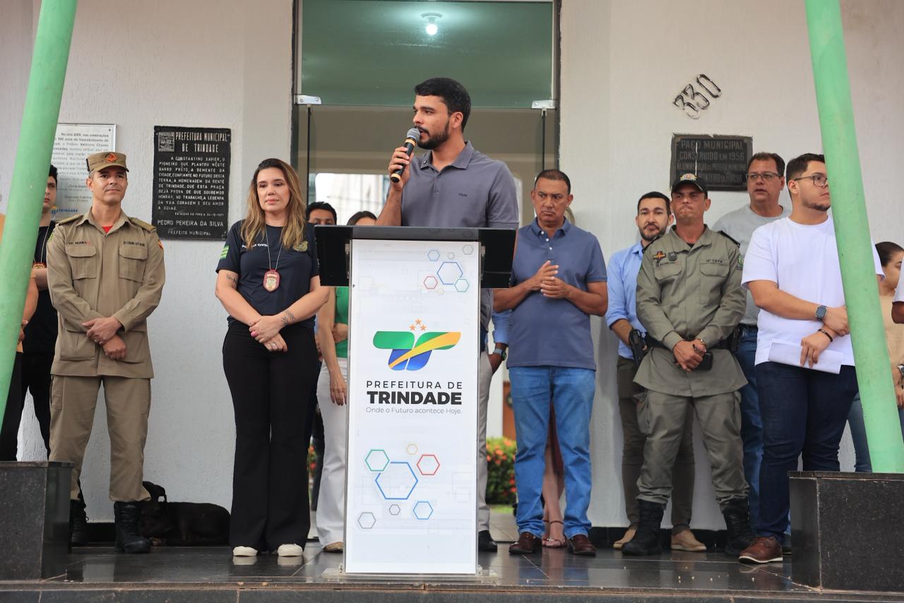 A Prefeitura de Trindade lançou na segunda-feira (1º/12) a Operação “Natal dos Sonhos Seguros”, uma ação integrada entre o Município e o Governo de Goiás para reforçar a segurança e o cuidado social durante todo o período natalino. A apresentação ocorreu na Praça da Prefeitura e reuniu autoridades municipais, estaduais e representantes das forças de segurança.