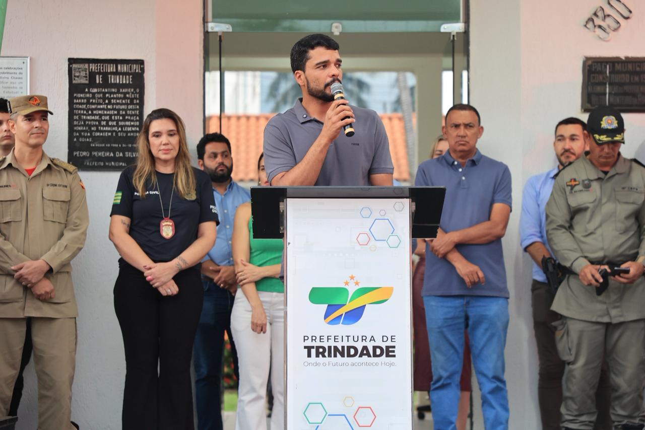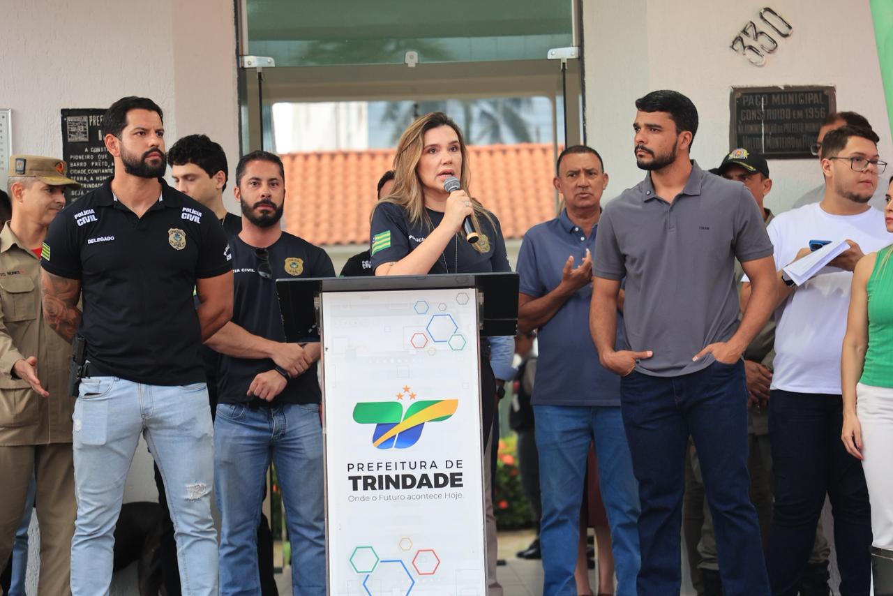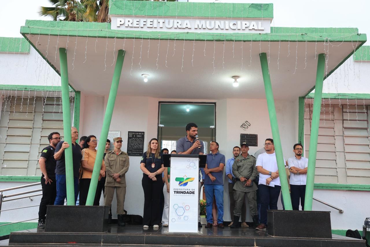 A Prefeitura de Trindade lançou na segunda-feira (1º/12) a Operação “Natal dos Sonhos Seguros”, uma ação integrada entre o Município e o Governo de Goiás para reforçar a segurança e o cuidado social durante todo o período natalino. A apresentação ocorreu na Praça da Prefeitura e reuniu autoridades municipais, estaduais e representantes das forças de segurança.