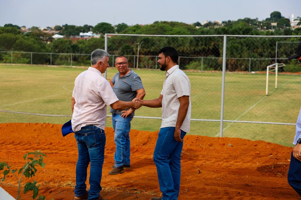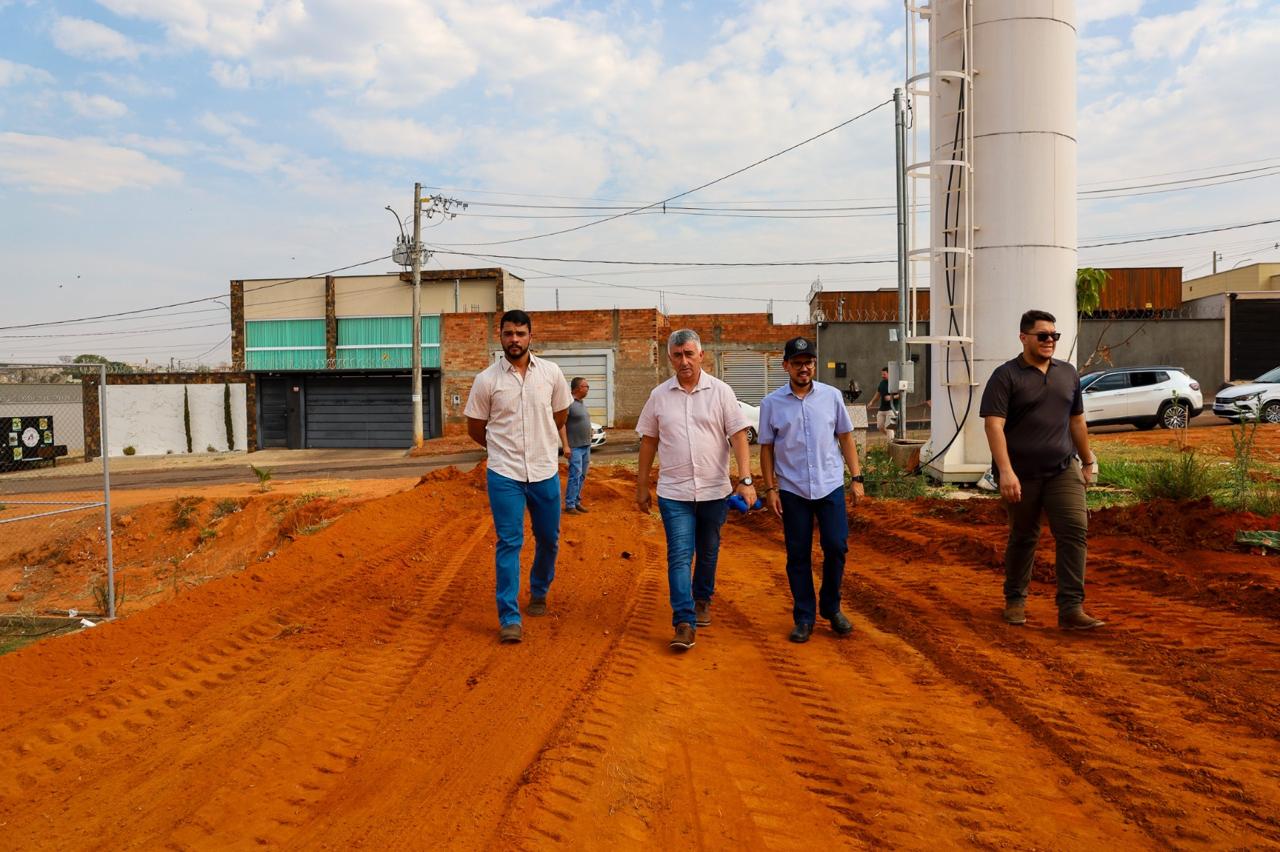 No Setor Sol Dourado, o prefeito acompanhou a terraplanagem do futuro Complexo Esportivo Sol Nascente, que vai oferecer uma nova área de lazer e prática esportiva para a comunidade. O projeto prevê a construção de vestiários, praça, estacionamento e toda a infraestrutura necessária para atender atletas e moradores, fortalecendo a política de incentivo ao esporte e à convivência social.