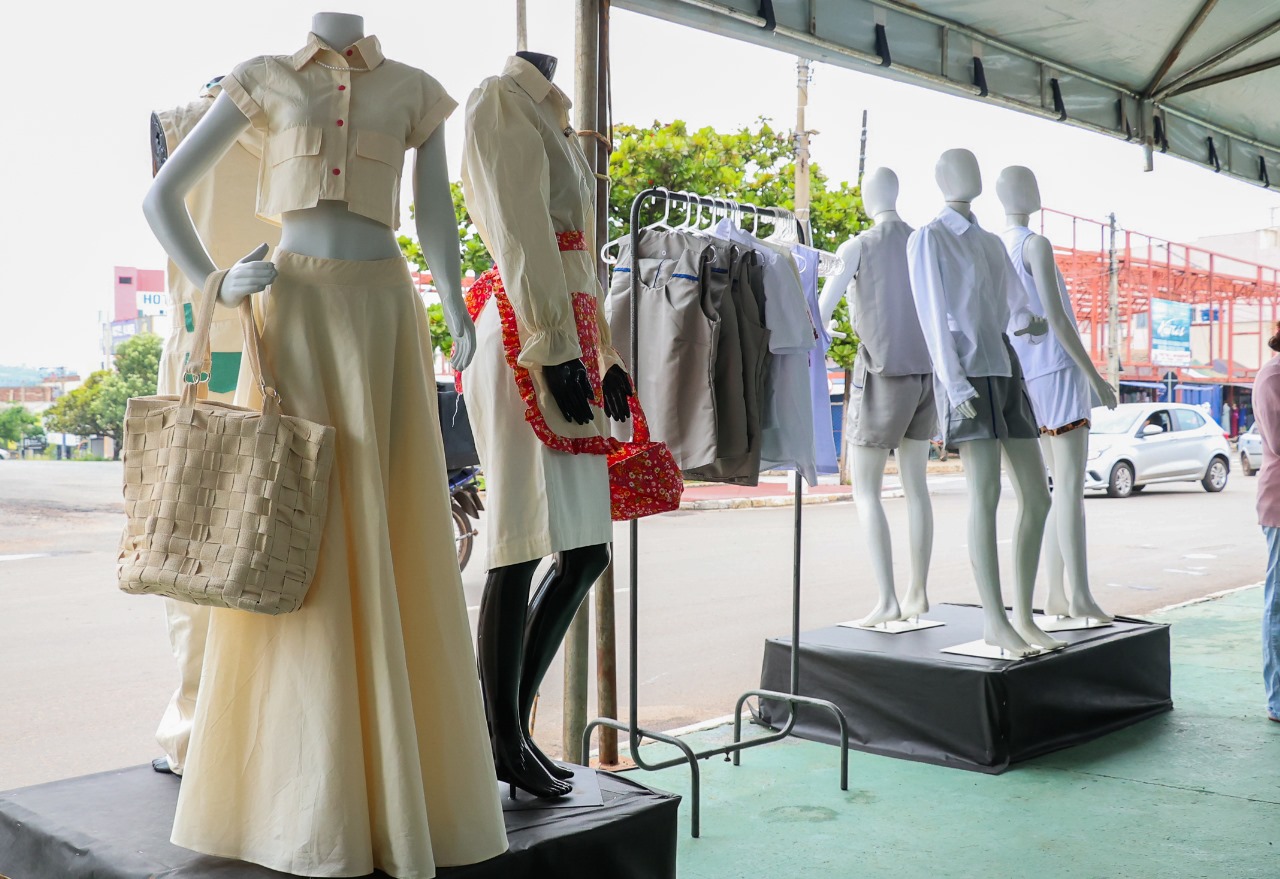 Alunos de corte, costura e modelagem participaram em níveis básico, médio e avançado dos cursos e tiveram oportunidade de expor e vender produtos que confeccionaram nas aulas em estante montado pela Secretaria Municipal de Indústria, Comércio e Serviços, em frente à Basílica do Divino Pai Eterno