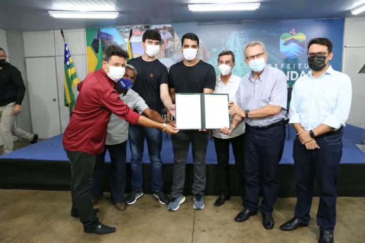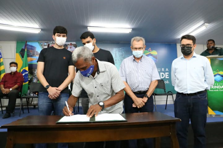 O prefeito Marden Júnior e o diretor presidente das Faculdades Aphonsiano, Marcos Antônio de Queiróz, assinaram o termo junto com os secretários municipais da Indústria e Comércio, Gustavo Queiróz, e da Casa Civil, Lhinicker D’Orázio, tendo como testemunhas o deputado estadual Francisco Oliveira, em visita a Trindade nesta quarta, mais os vereadores Nélio Fortunato e Baiano do Esporte.