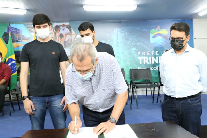 O prefeito Marden Júnior e o diretor presidente das Faculdades Aphonsiano, Marcos Antônio de Queiróz, assinaram o termo junto com os secretários municipais da Indústria e Comércio, Gustavo Queiróz, e da Casa Civil, Lhinicker D’Orázio, tendo como testemunhas o deputado estadual Francisco Oliveira, em visita a Trindade nesta quarta, mais os vereadores Nélio Fortunato e Baiano do Esporte.