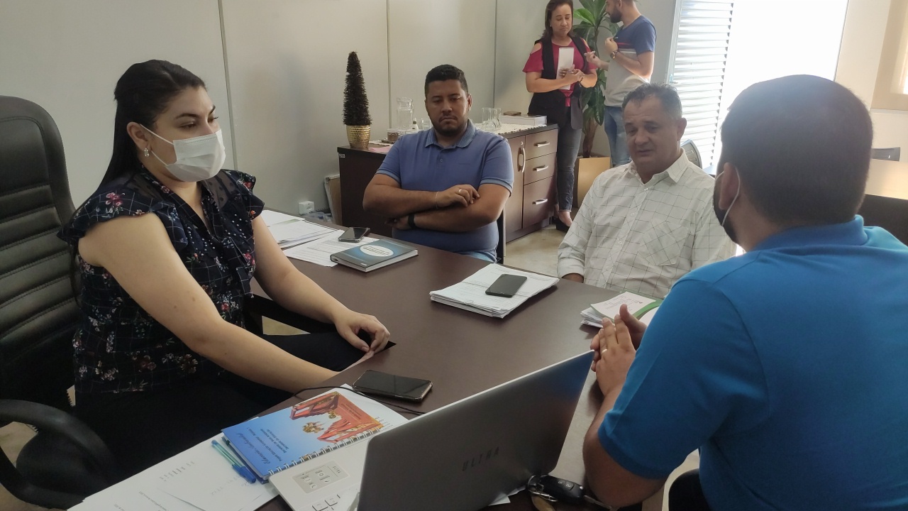 A secretária de Habitação e Regularização Fundiária, Tayná Barbosa, recebeu o empresário Luís Eduardo Caetano, no Centro Administrativo Municipal.