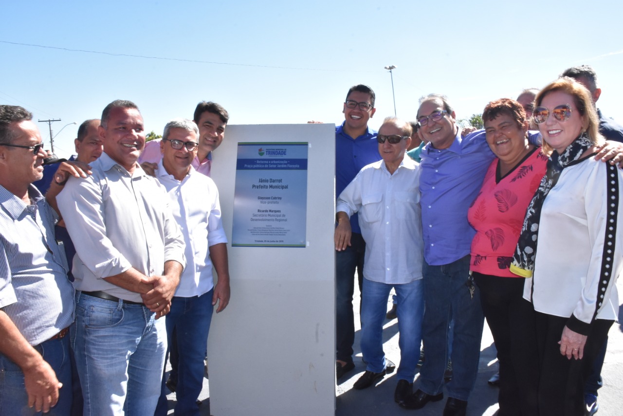 A Prefeitura de Trindade entregou, na manhã desta quarta-feira (05/06), as obras de revitalização e urbanização da praça do setor Jardim Floresta, região Leste de Trindade. O espaço revigorado ganhou novos bancos, jardinagem, iluminação especial, playground, pista de caminhada e estruturas para prática de esportes. Na solenidade que marcou a entrega dos benefícios estavam presentes o prefeito Jânio Darrot, primeira-dama, Dairdes Darrot, vice-prefeito Cabriny, vereadores, secretários municipais e a comunidade local. As obras inserem-se no projeto da Prefeitura de Trindade no sentido de valorizar iniciativas voltadas para o meio ambiente, ao mesmo tempo em que promove a abertura de áreas de lazer para a população.