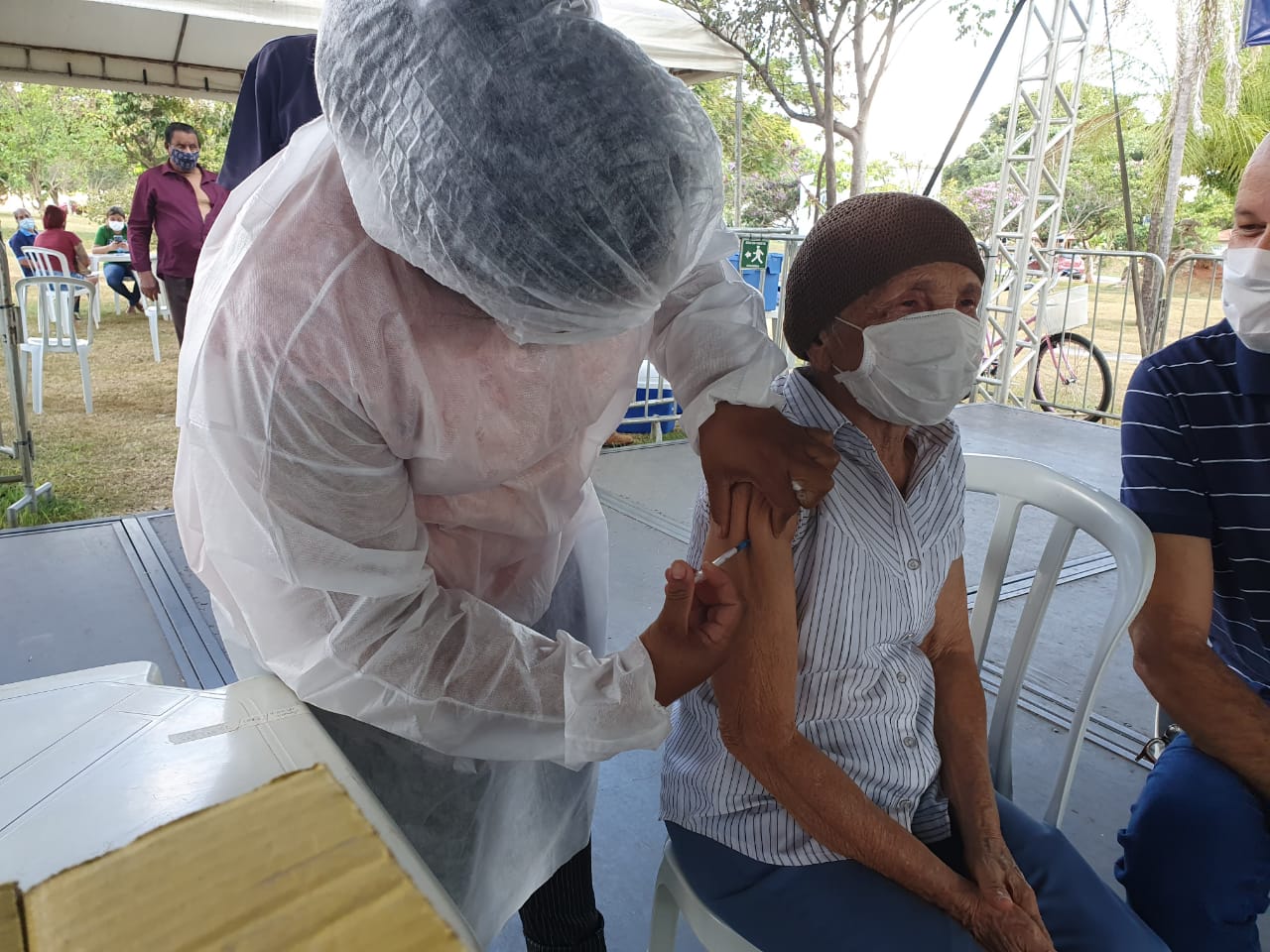 A Prefeitura de Trindade deu início, nesta quinta-feira (27/05), à aplicação da segunda dose da vacina AstraZeneca em idosos com 80 anos ou mais que receberam a primeira entre os dias 23 e 27 de fevereiro. Os atendimentos foram realizados no Parque Lara Guimarães.