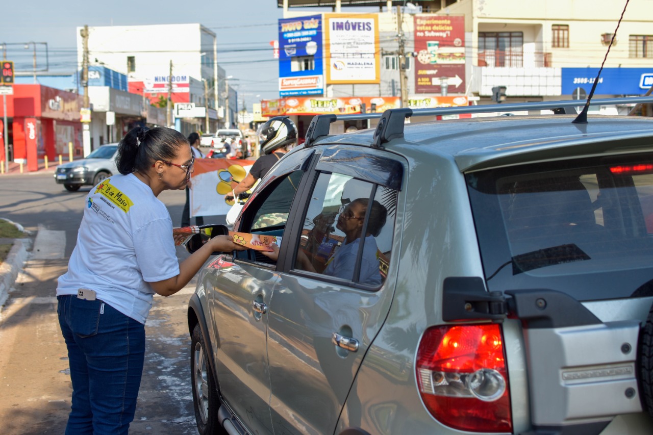 Campanha Faça Bonito tem ações nos cruzamentos das avenidas Manoel Monteiro e Raimundo de Aquino. Equipe da Secretaria de Assistência Social distribui panfletos informativo com dicas para a proteção de crianças e adolescentes e desenvolvimento de processo de socialização e educação com direitos