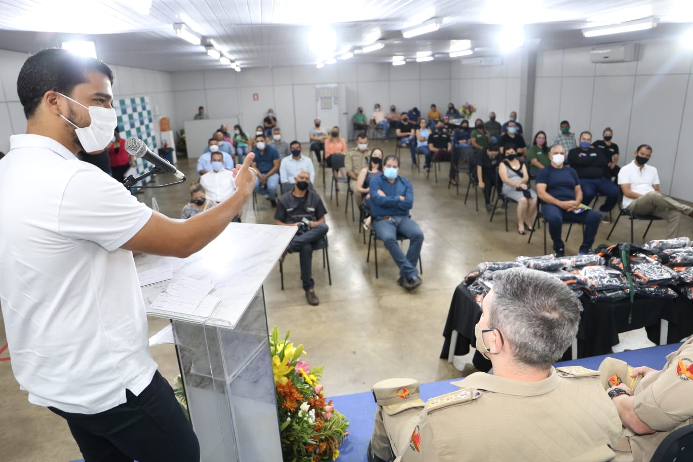O prefeito Marden Júnior entregou o material para o tenente-coronel Davi Augusto, comandante do 15º Batalhão do Corpo de Bombeiros.