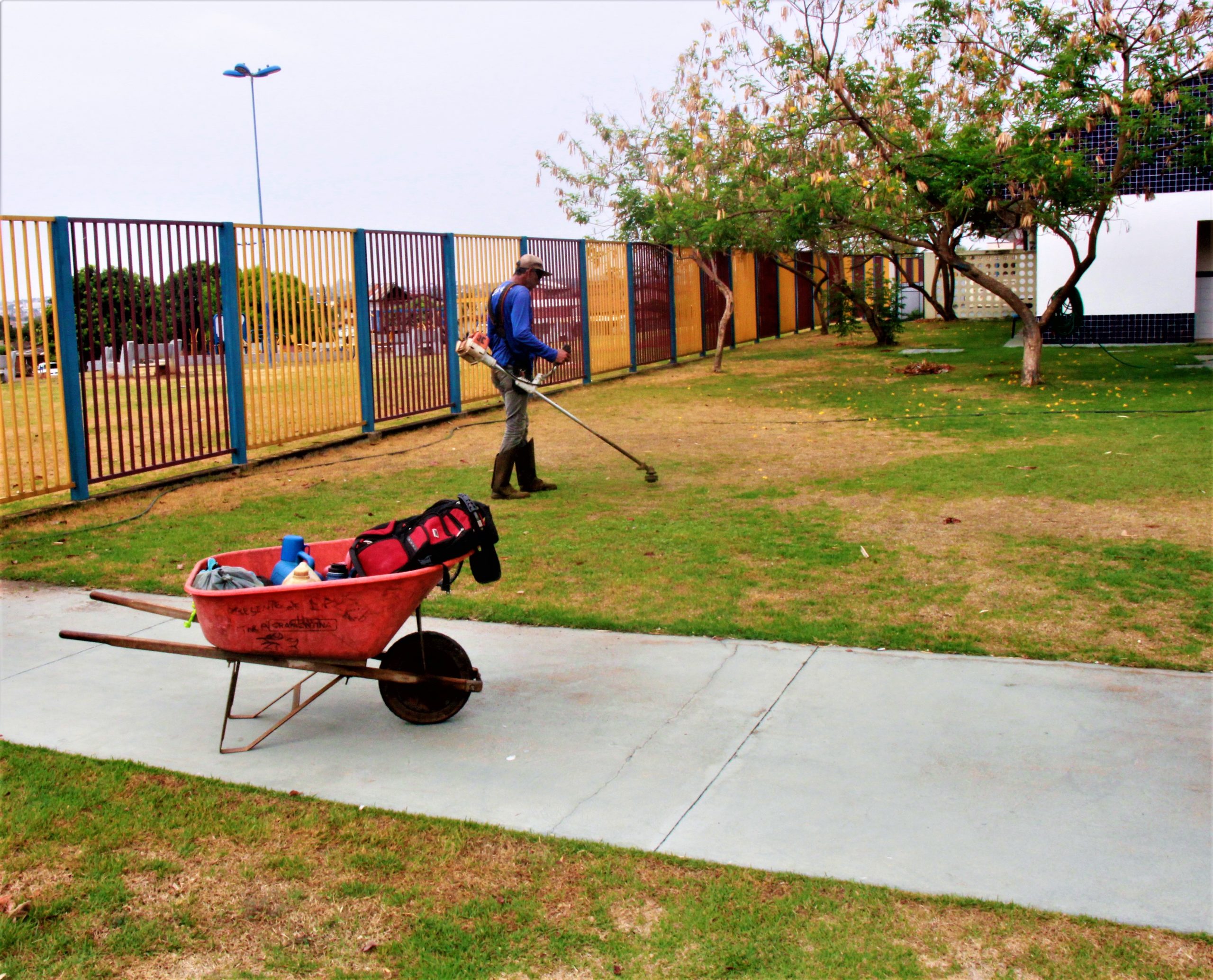 Na terça-feira (05/10), por exemplo, foram realizados os trabalhos de roçagem no Cmei Thaise Freire, na Vila Pai Eterno, e também de jardinagem na Avenida Brasília, onde fica a praça do Supermercado Imperial, no Jardim Salvador, ambos os locais na Região Central.