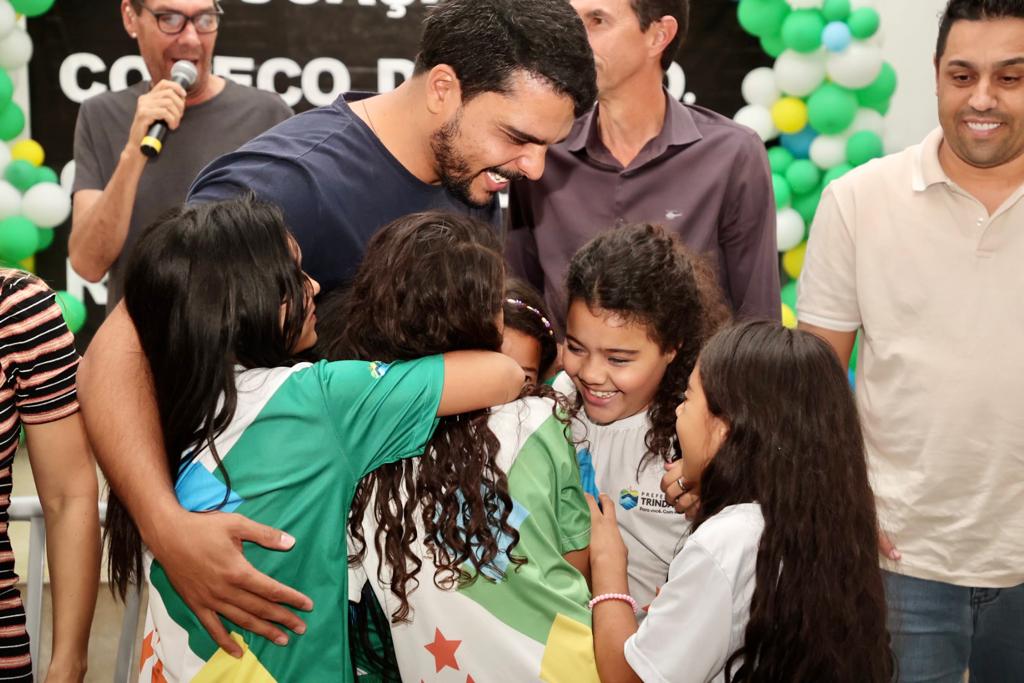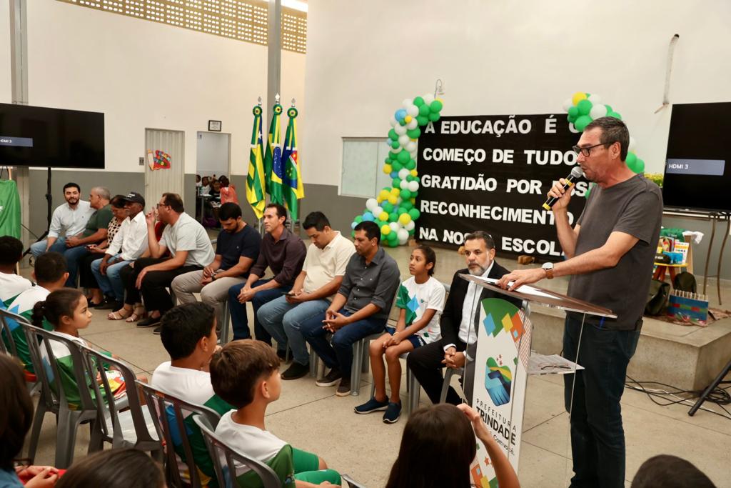 Investimento soma R$ 1,3 milhão, oriundo de recursos próprios da Prefeitura de Trindade. Evento faz parte das celebrações alusivas aos 103 anos de Trindade. Unidade possui 15 salas de aula que atendem 800 alunos, no Jardim Ipanema. “É assim que a gente faz a gestão, voltada para as pessoas, para o bem comum”, pontua prefeito. Secretário municipal de Educação, Sérgio Sanches informa que, até final da gestão, 80% das unidades estarão reconstruídas ou reformadas
