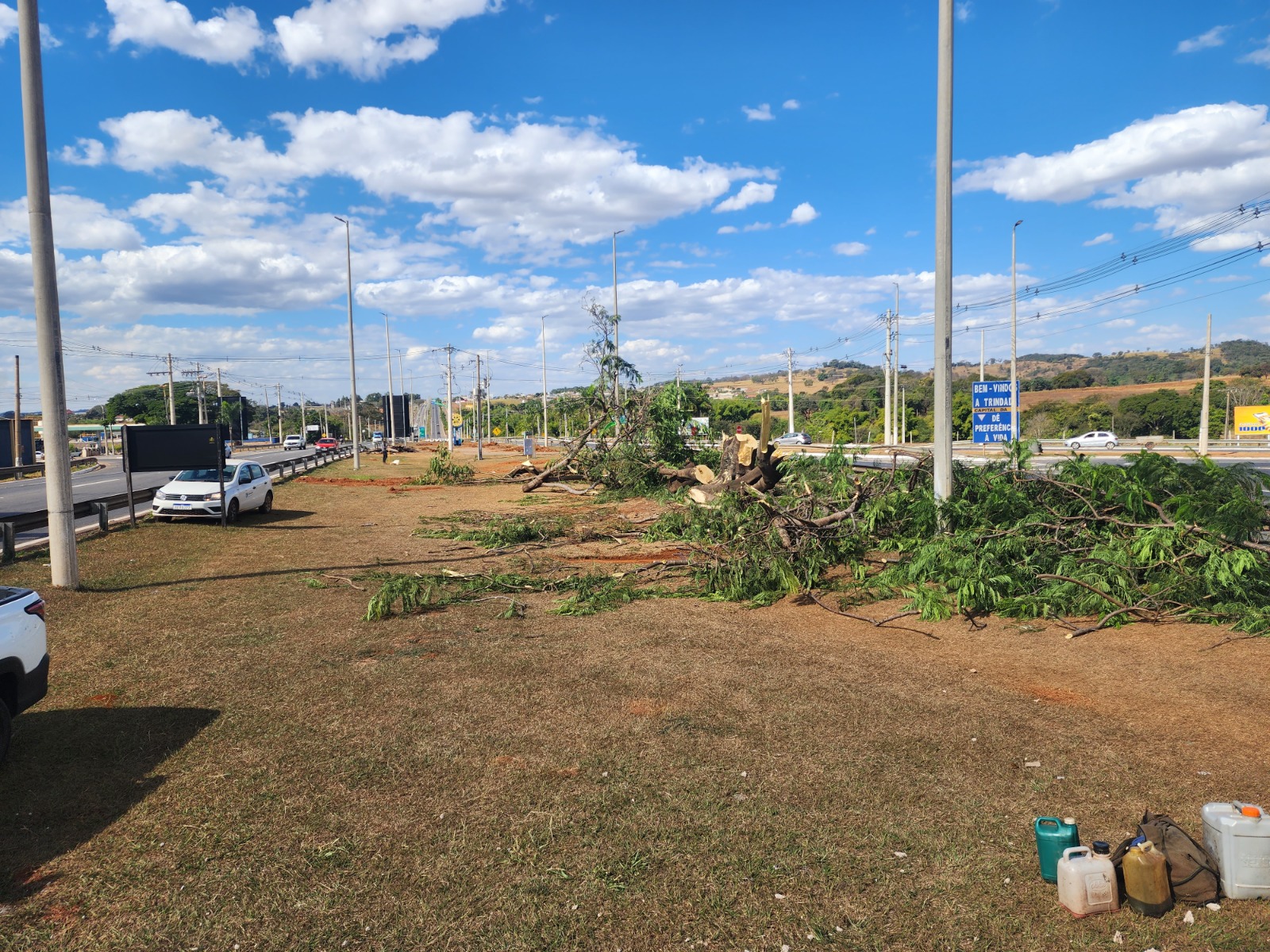 A Secretaria Municipal de Infraestrutura iniciou o trabalho de retirada de árvores, asfalto e placas que estavam no local onde será construído o viaduto. O antigo Flamboyant, que era uma marca na entrada da cidade, e o letreiro, em cimento, com o nome Trindade tiveram que ser removidos. As intervenções são necessárias para que a obra seja realizada.