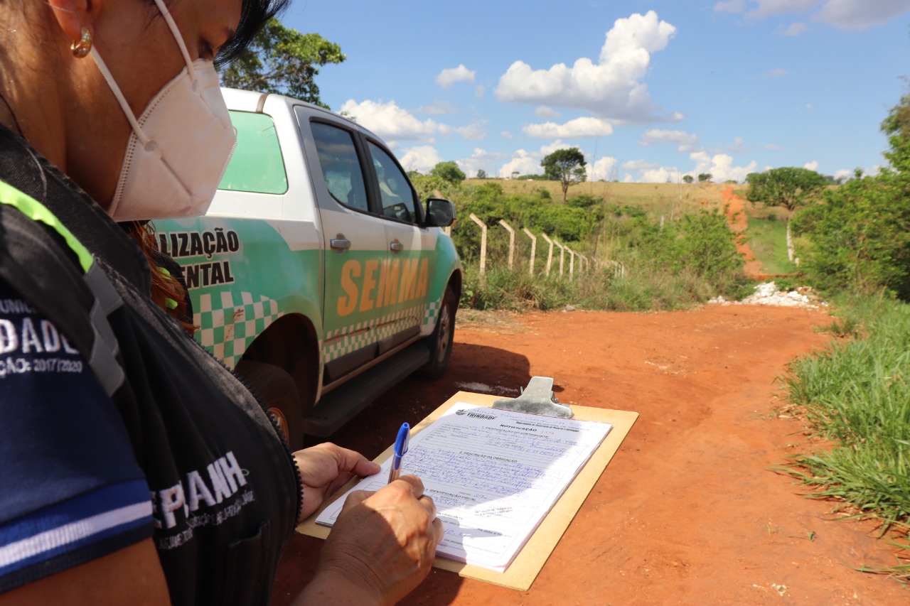 Após denúncia de moradores, fiscais de Posturas e Meio Ambiente da Prefeitura de Trindade notificaram nesta sexta-feira (29/10) os responsáveis pelo loteamento Parque Serra Branca, na Região Leste da cidade. O imóvel é privado e está sob embargo judicial.