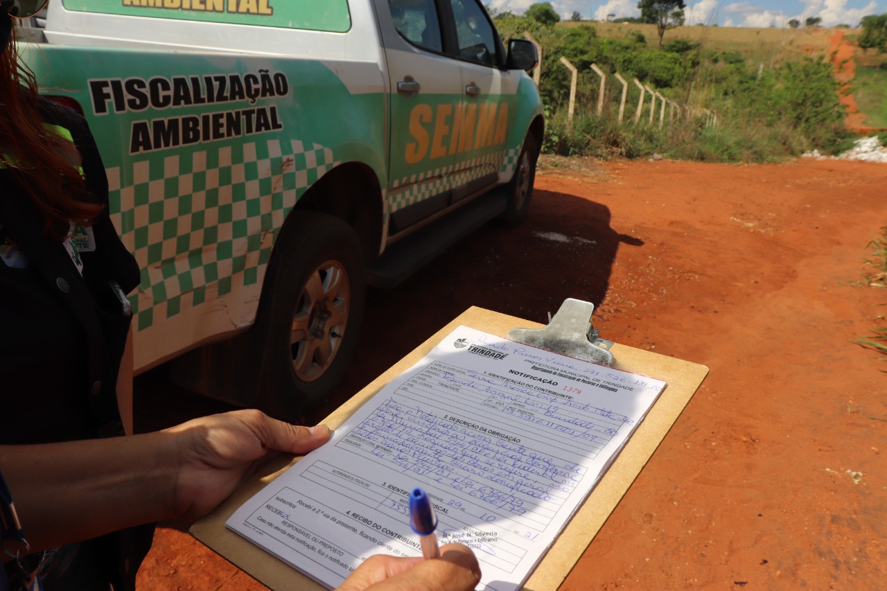 Após denúncia de moradores, fiscais de Posturas e Meio Ambiente da Prefeitura de Trindade notificaram nesta sexta-feira (29/10) os responsáveis pelo loteamento Parque Serra Branca, na Região Leste da cidade. O imóvel é privado e está sob embargo judicial.