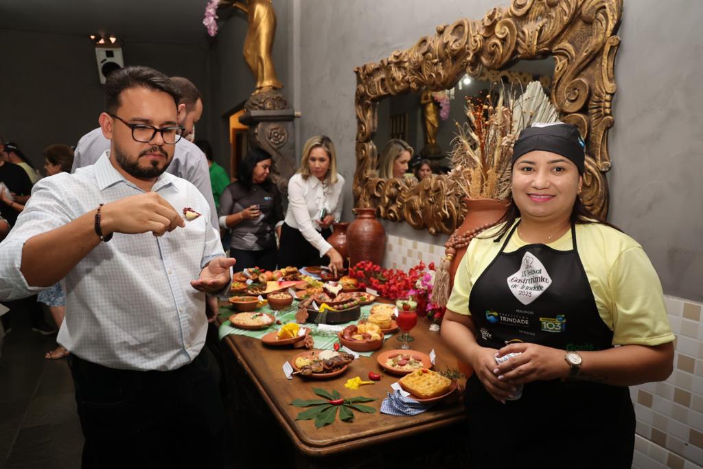 A Prefeitura de Trindade realizou, nesta terça-feira (23/08), o pré-lançamento do IX Festival Gastronômico de Trindade ao público e à imprensa, na sede do Grupo Desencanto. O evento apresentou os pratos que serão servidos na edição 2023.