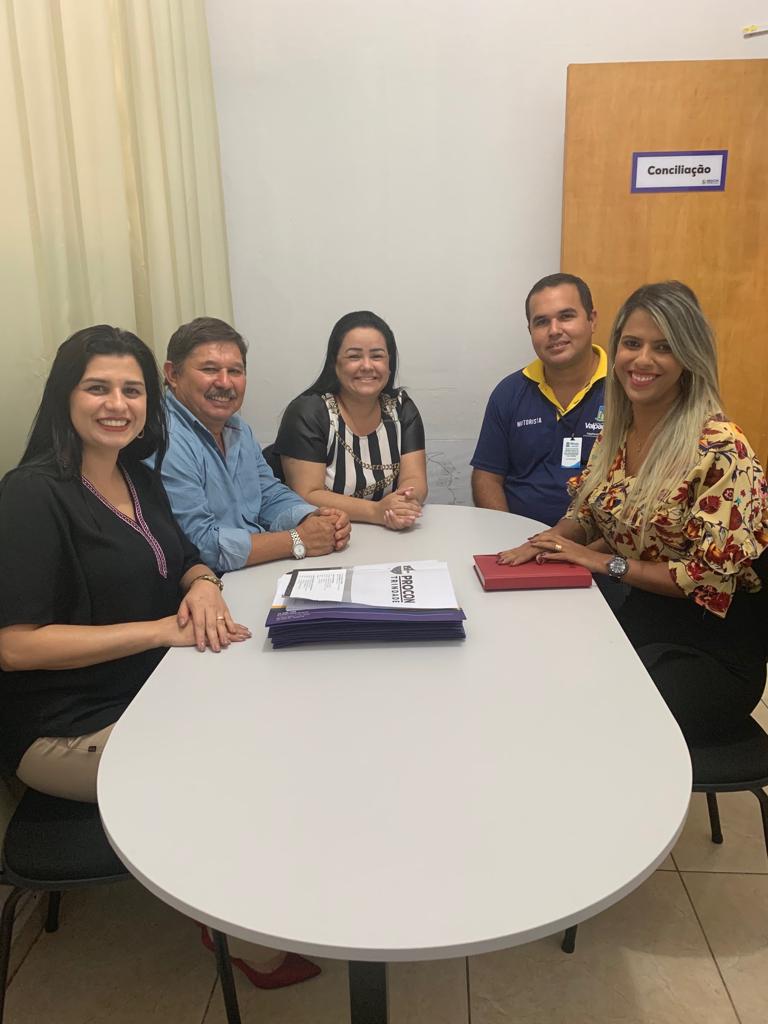 A presidente do Instituto de Proteção e Defesa do Consumidor (Procon) de Trindade, Flávia Firminia de Carvalho, recebeu nessa quinta-feira (11/04), o presidente do mesmo órgão do município de Valparaíso de Goiás, Venerando Arantes Ferreira, acompanhado de equipe. Flávia Firminia informa que a visita foi para conhecer o modelo implantando da autarquia em Trindade e sua organização. Ela destaca a importância do Procon, principalmente para a harmonização das relações de consumo, sendo referência para outros municípios de Goiás. Participou da visita a diretora jurídica do Procon de Trindade, Pollyanna Rego Borges Mendes.
