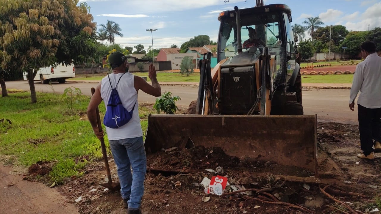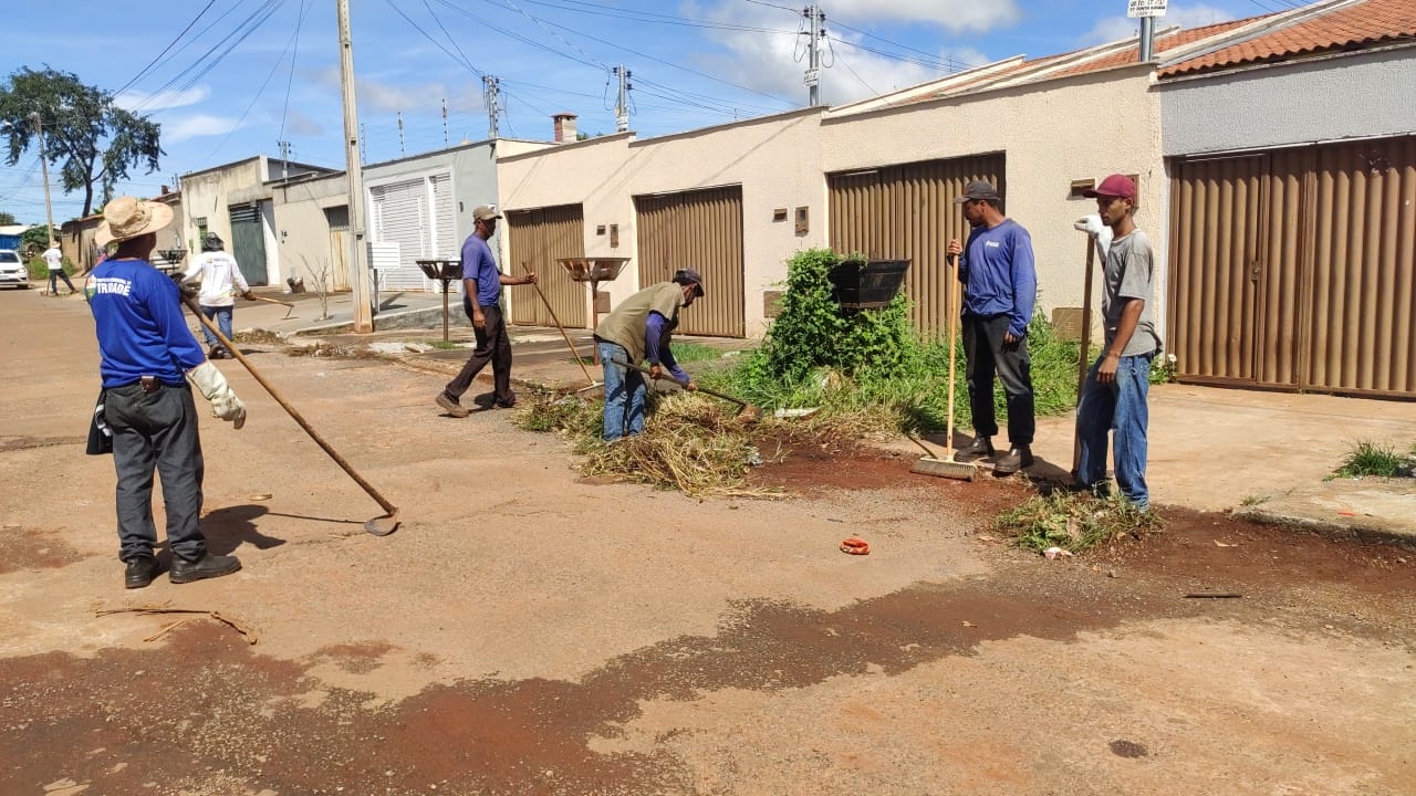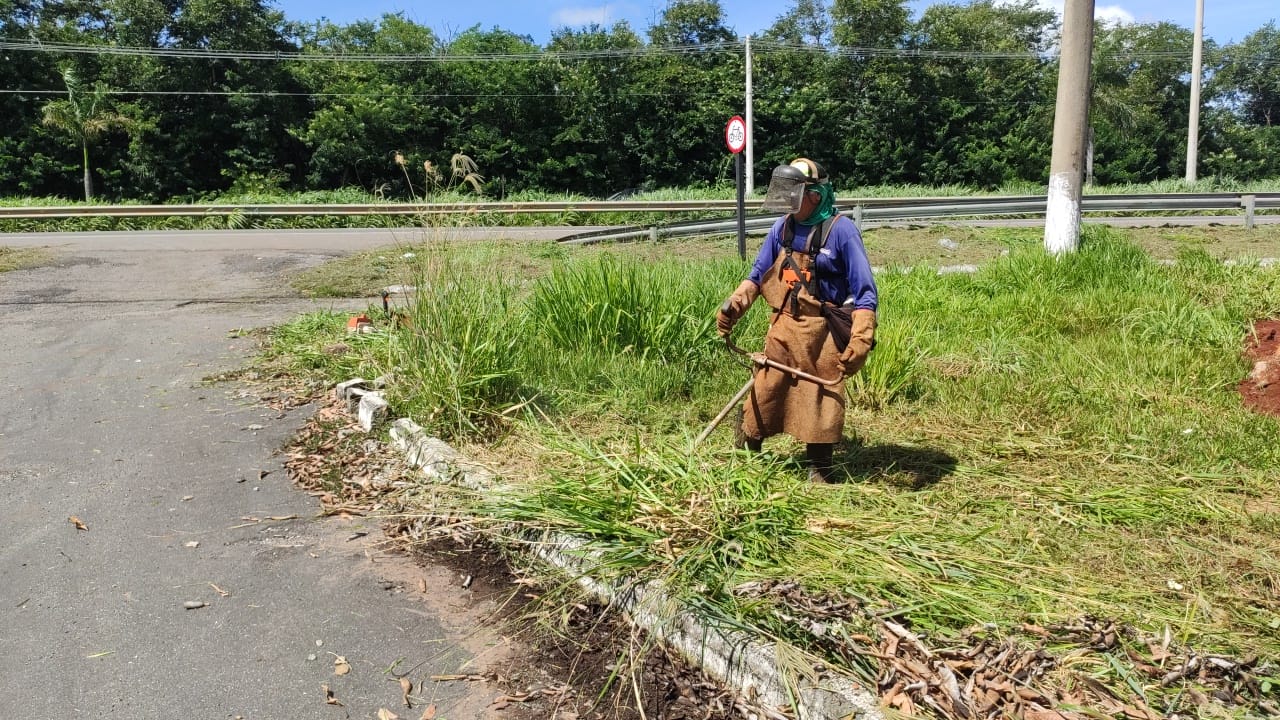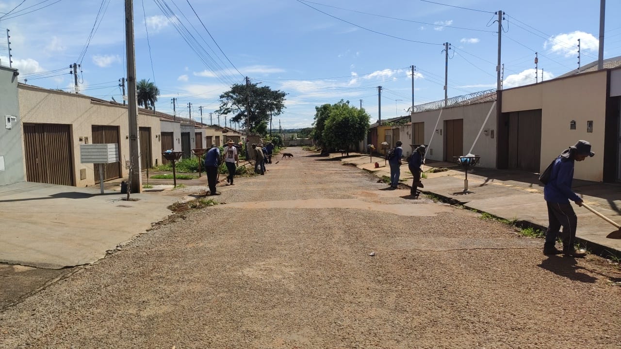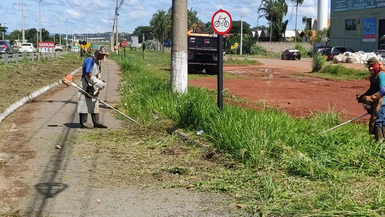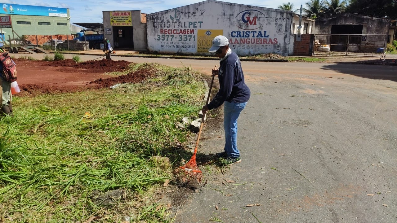 Para limpeza da cidade, foi feita a roçagem manual e rastelo, na Avenida Presidente Vargas, divisa entre Pontakayana e Setor Marista. E na Avenida Flamboyant os servidores fizeram a retirada de grama podada e entulho.