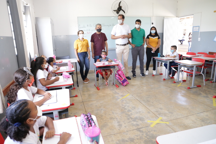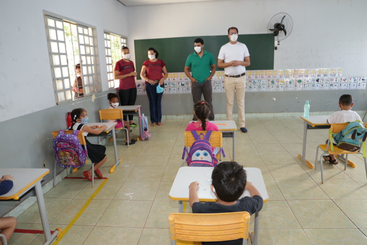 O chefe de Gabinete, Rodrigo Bueno, também fez visitas às escolas durante o retorno desta segunda-feira. Ele esteve na Escola Professora Selma Ferreira, no Setor Vida Nova, onde mais de 720 alunos matriculados do 1º ao 5º ano do Ensino Fundamental e Ensino de Jovens e Adultos (EJA) voltam esta semana às aulas em turnos divididos.