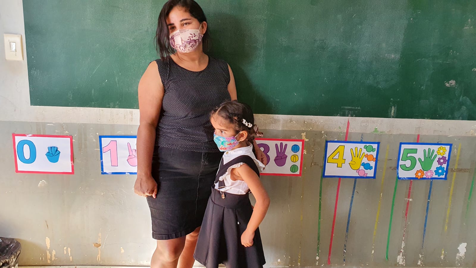 “Ela veio de outra escola e foi matriculada na fase das aulas remotas, por isso está estranhando”, contava ele, enquanto esperava a filha entrar na sala. Rodrigo mora na zona rural de Trindade e, se Gabriele não fosse para a escola, teria de ficar na casa da sogra para não ficar sozinha, enquanto os pais trabalham.