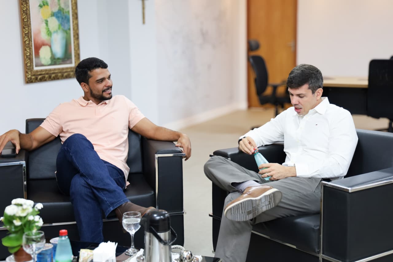 Encontro entre prefeito Marden Júnior e Pedro Sales discute via de ligação entre Setor Ana Rosa e Jardim Cerrado, que permitirá maior integração entre Trindade e Goiânia, restauração da GO-060 e construção de viaduto no Setor Vera Cruz