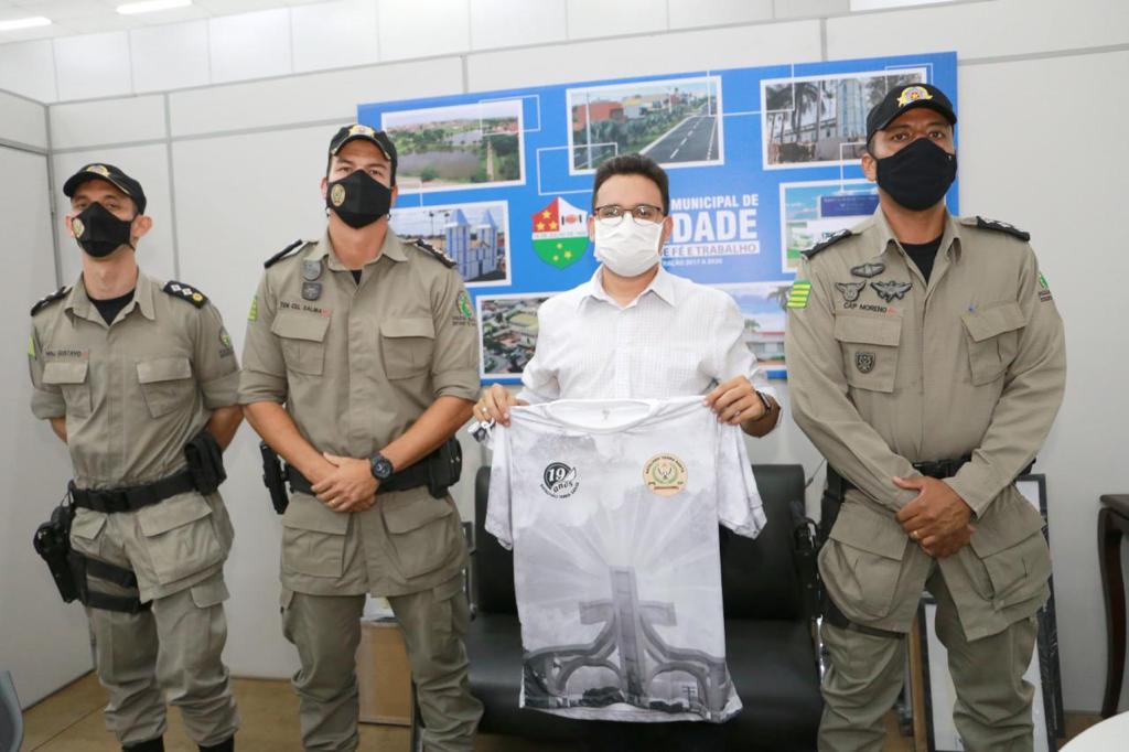 Gustavo recebeu uma lembrança alusiva aos 19 anos do batalhão, celebrados nesse mês, e também agradeceu a parceria.