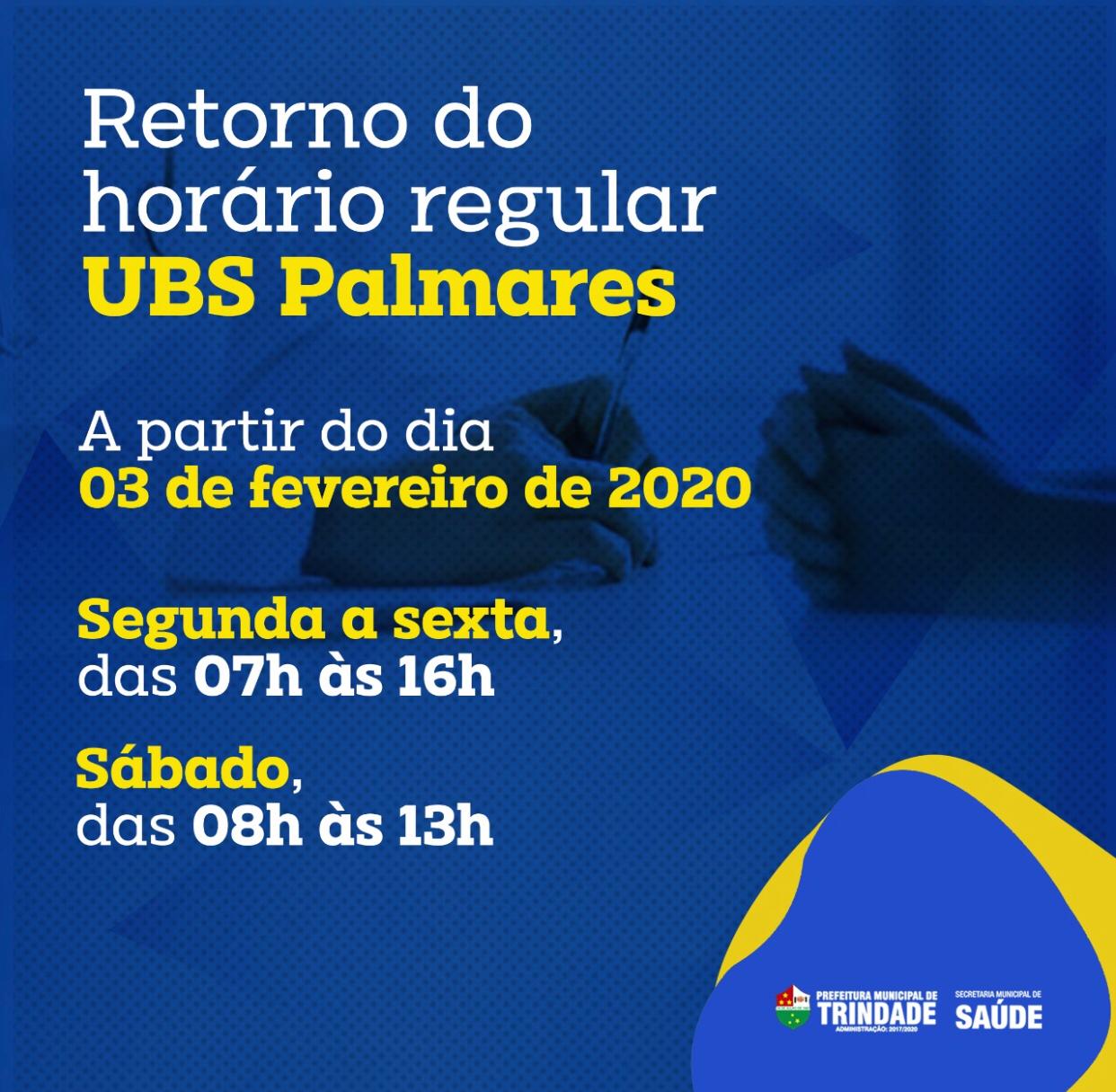 A Secretaria Municipal de Saúde informa que, para melhor servir a comunidade do setor Palmares, na região Leste, a equipe 317 da Estratégia Saúde da Família que atendia no horário estendido (até as 21h), retornará ao horário normal (7h às 16h).