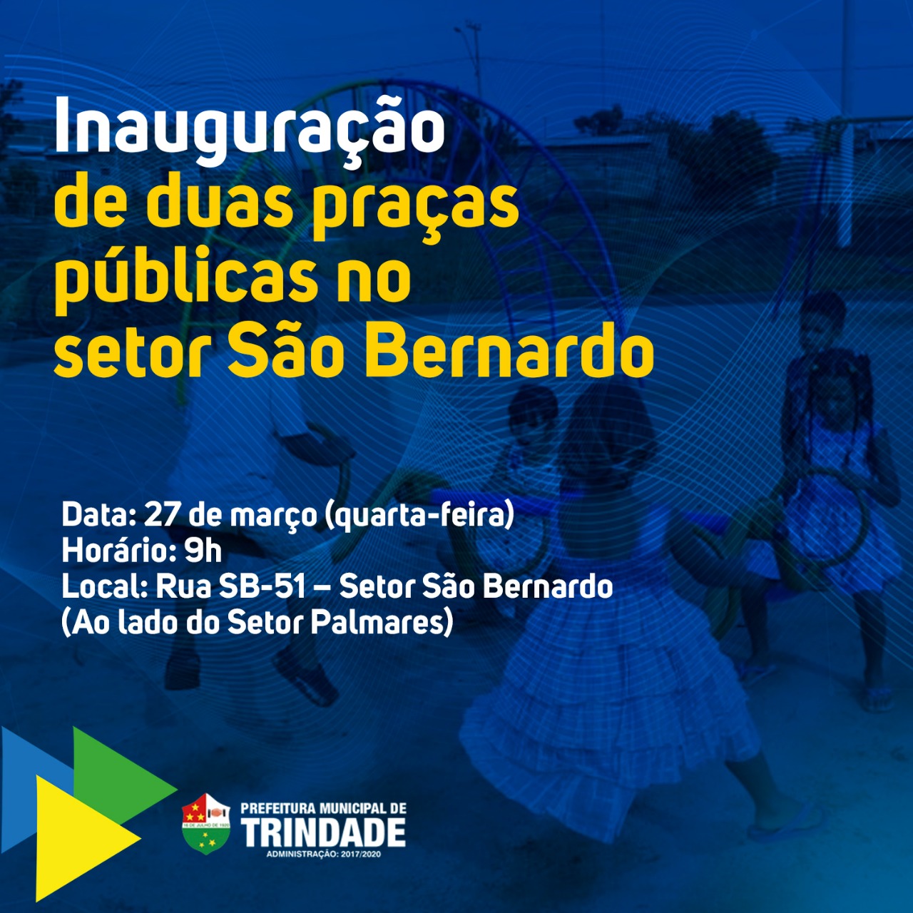 A gestão municipal realiza todos os esforços para revigorar e ampliar espaços de convivência que cooperam na melhoria das condições de vida de todos. O prefeito Jânio Darrot e a primeira-dama, Dairdes Darrot, convidam você e sua família para a inauguração de duas praças públicas no Setor São Bernardo. Nesta quarta-feira (27/03), na Rua SB-51, ao lado do Setor Palmares. Participe!