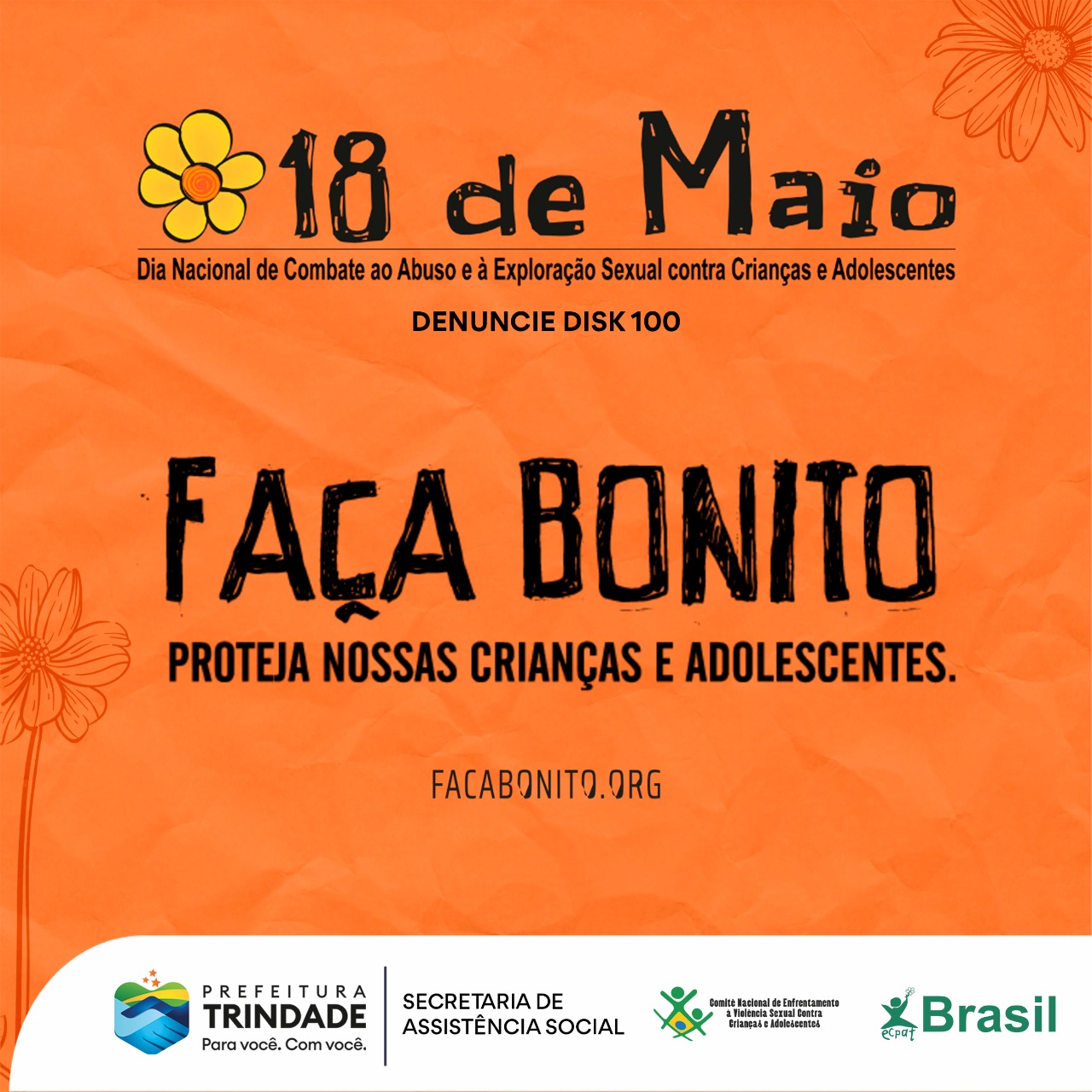A Prefeitura de Trindade, através da Secretaria Municipal de Assistência Social, deu início, nesta quarta-feira (11/05), aos eventos referentes ao Dia Nacional de Combate ao Abuso e à Exploração Sexual contra Crianças e Adolescentes, celebrado todo ano em 18 de maio. A programação vai até dia 21 com várias atividades de conscientização, orientação e alerta.