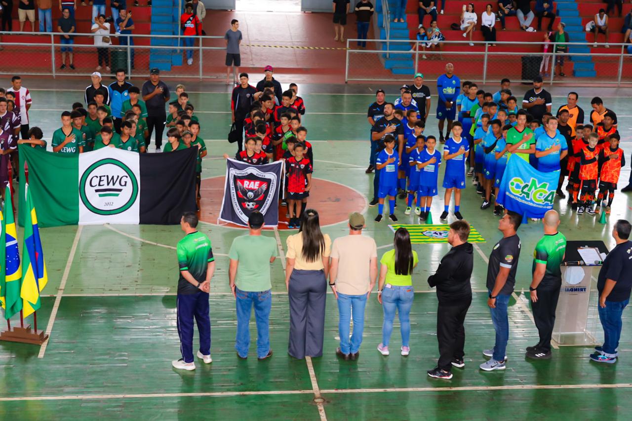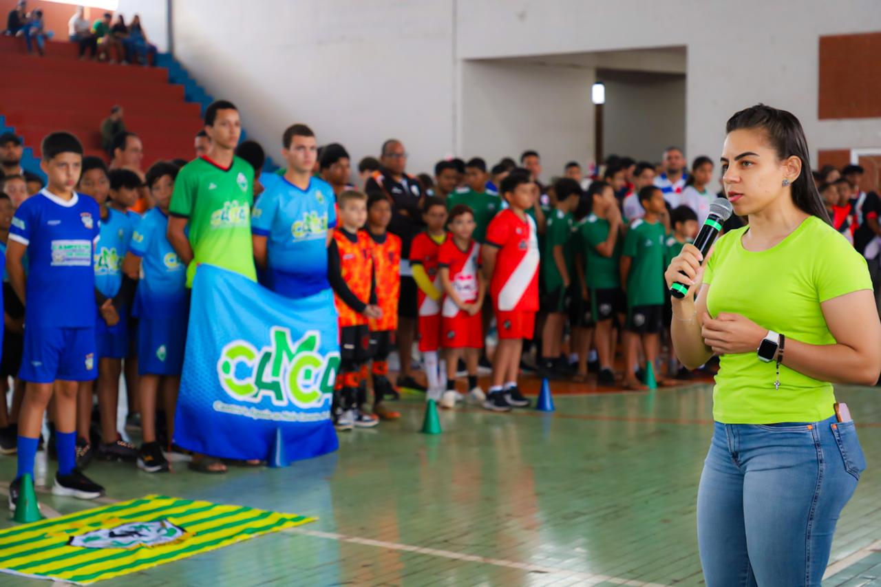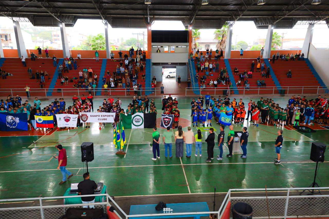 Prefeitura Municipal, por meio da Secretaria de Esporte e Juventude, reúne 22 escolinhas e 78 equipes. Prefeito Marden, secretária Luana Vieira e vereadora Diana Camargo destacam integração entre esporte, educação e família na abertura do evento