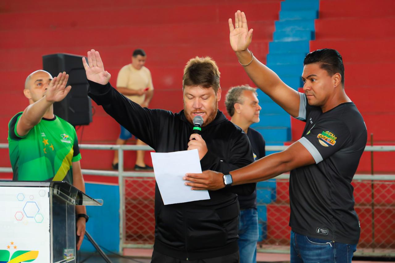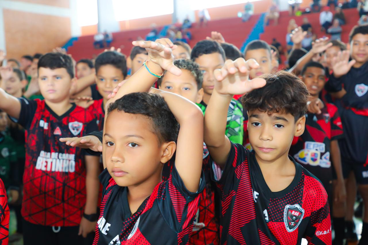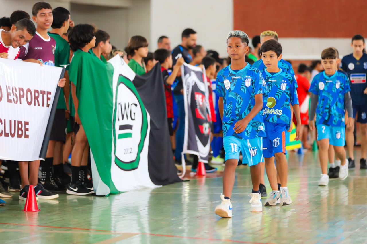 Prefeitura Municipal, por meio da Secretaria de Esporte e Juventude, reúne 22 escolinhas e 78 equipes. Prefeito Marden, secretária Luana Vieira e vereadora Diana Camargo destacam integração entre esporte, educação e família na abertura do evento