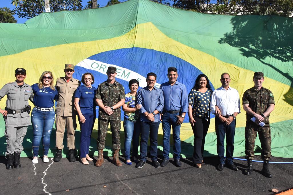 A Prefeitura Municipal, em parceria com o Exército Brasileiro, promoveu, na manhã deste sábado (13/07), a ação social “Trindade de mãos dadas com o Exército”, na praça do Santuário Basílica do Divino Pai Eterno. O representante do Comando de Operações Especiais, Macedo Júnior, agradeceu ao prefeito Jânio Darrot por ter propiciado as condições para realização da atividade com colaboração das secretarias municipais. O evento contou com a participação do vice-prefeito Cabriny. No local foram ofertados atendimentos médicos e odontológicos, além de atividades recreativas para as crianças, como pista de cordas, oficinas de pintura de rosto, artesanato e gincanas. Houve, também, apresentação da banda de música do Comando de Operações Especiais. O vice-prefeito Cabriny manifestou gratidão ao Exército Brasileiro pela parceria com a prefeitura de Trindade. O superintende de Comunicação e Eventos (Semuce), Gustavo Queiroz, destacou a importância do evento para os moradores que tiveram acesso a serviços de qualidade. A Secretaria de Assistência Social participou com programas sociais, a secretaria de Educação e Cultura contribuiu com atrações culturais. A Secretaria de Meio ambiente fez doações de mudas e a Agência de Serviços Públicos preparou toda a infraestrutura necessária. Autoridades no palanque principal