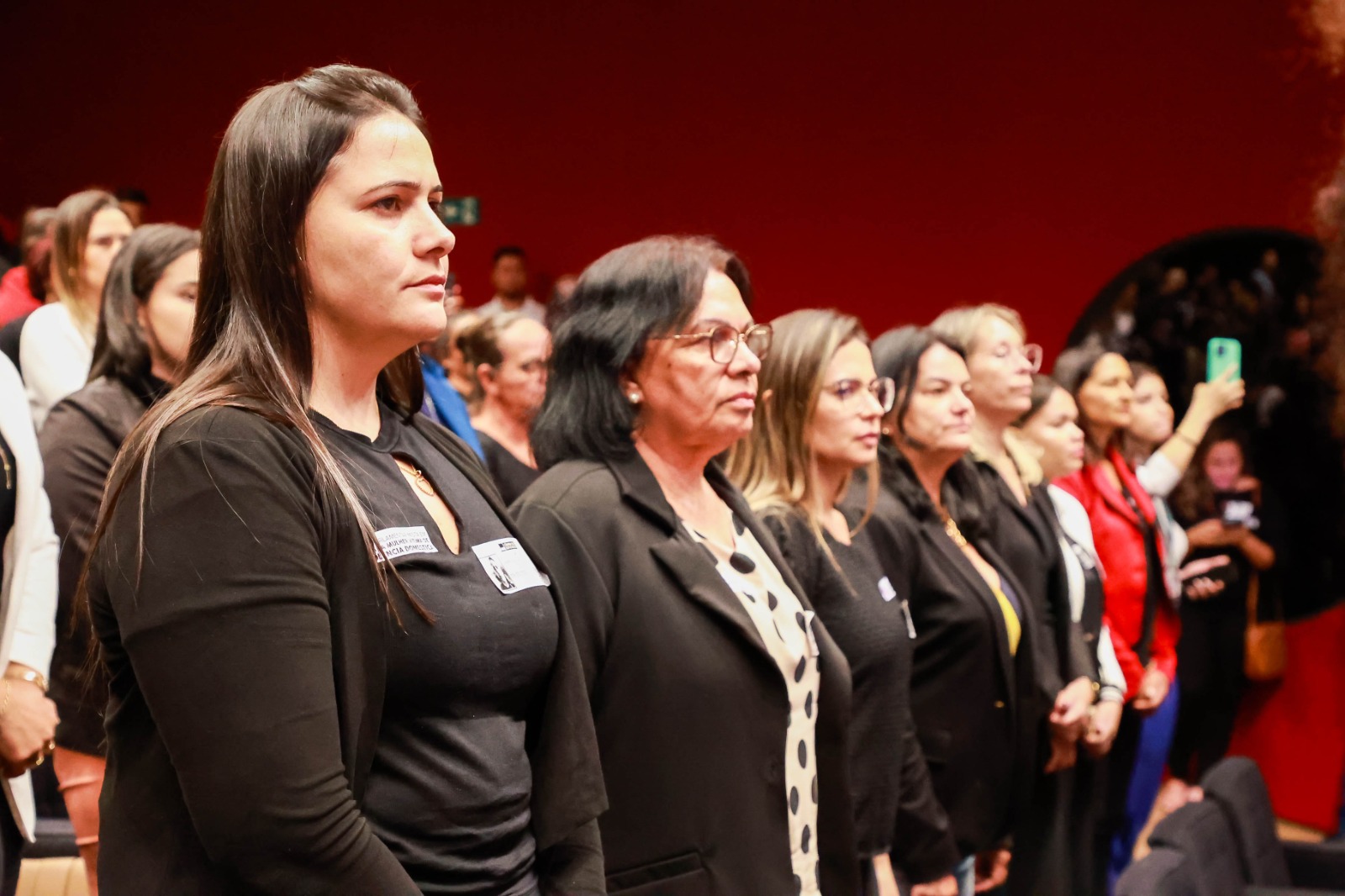 Estiveram presentes Gabriela Alves, secretária municipal de Assistência Social, Ariane Leite, presidente do Conselho Municipal de Direito da Mulher de Trindade, Rouane Azevedo, madrinha da educação, Maria Luci Galindo, mãe do deputado estadual Cristiano Galindo, e 50 servidoras da Secretaria Municipal de Educação.