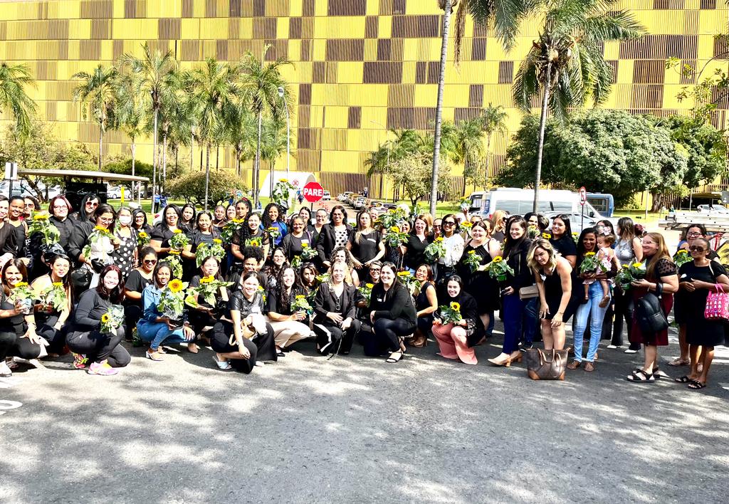 Estiveram presentes Gabriela Alves, secretária municipal de Assistência Social, Ariane Leite, presidente do Conselho Municipal de Direito da Mulher de Trindade, Rouane Azevedo, madrinha da educação, Maria Luci Galindo, mãe do deputado estadual Cristiano Galindo, e 50 servidoras da Secretaria Municipal de Educação.