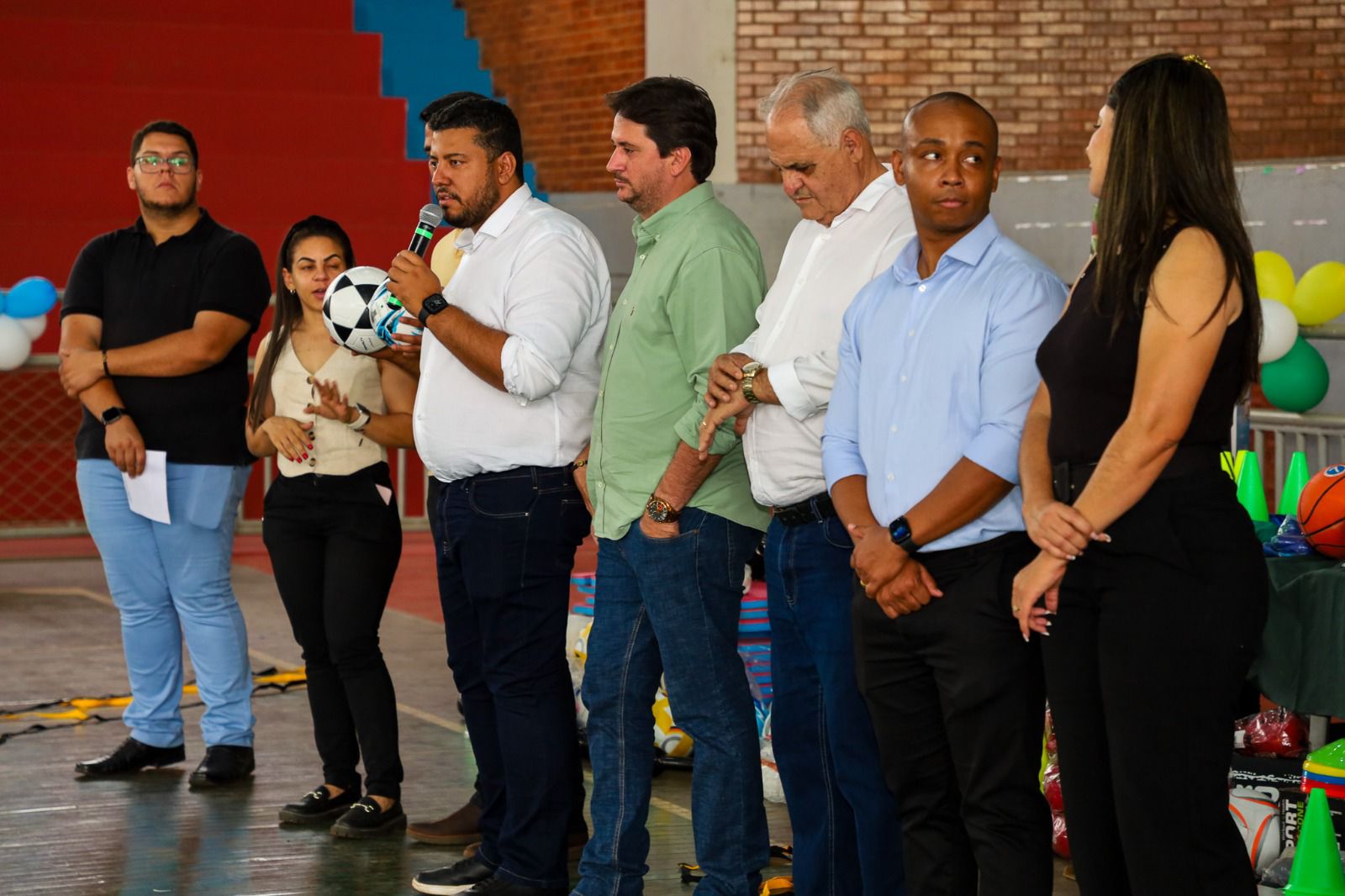 O prefeito Marden, o vice-prefeito Juan Freire, a secretária municipal de Esporte e Juventude, Luana Vieira, e o deputado estadual Cristiano Galindo entregaram nesta quinta-feira, (28/08), novos materiais destinados às atividades de iniciação esportiva em Trindade. O município recebeu um investimento de R$ 100 mil, viabilizado por meio de emendas do deputado Cristiano Galindo.