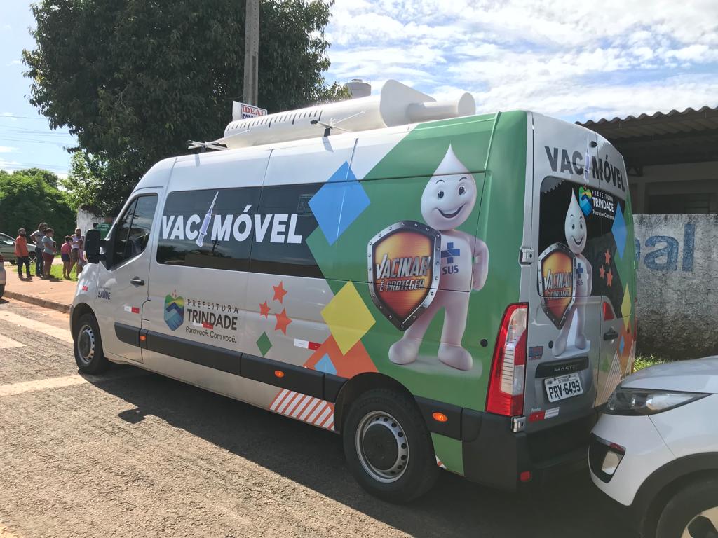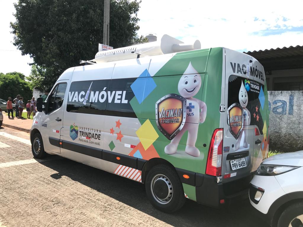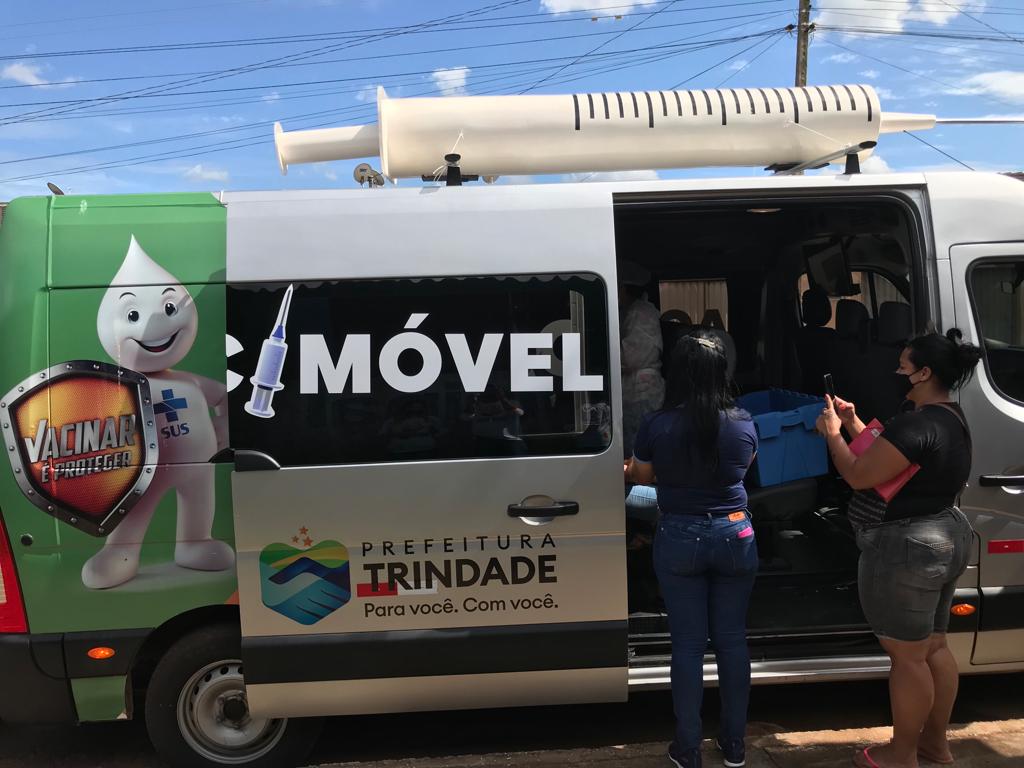 Crianças e adultos estão sendo vacinados contra a Covid-19 com o apoio do Vacimóvel, uma van equipada especialmente para este atendimento, disponibilizada pela Prefeitura de Trindade. Nesta segunda e terça-feira (06 e 07/03), o Vacimóvel estaciona na Escola Municipal Tabelião Augusto Costa, na Rua flor da Esperança, Setor Pontakayana.