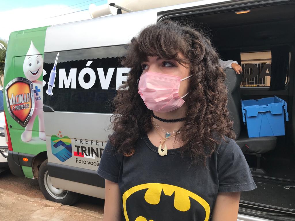 Ela explicou que queria vacinar pra não pegar a Covid-19. “Fiquei com medo, doeu um pouco, mas foi tranquilo”, disse ela. Kêmile não vê a hora de poder ir à escola sem máscara facial.