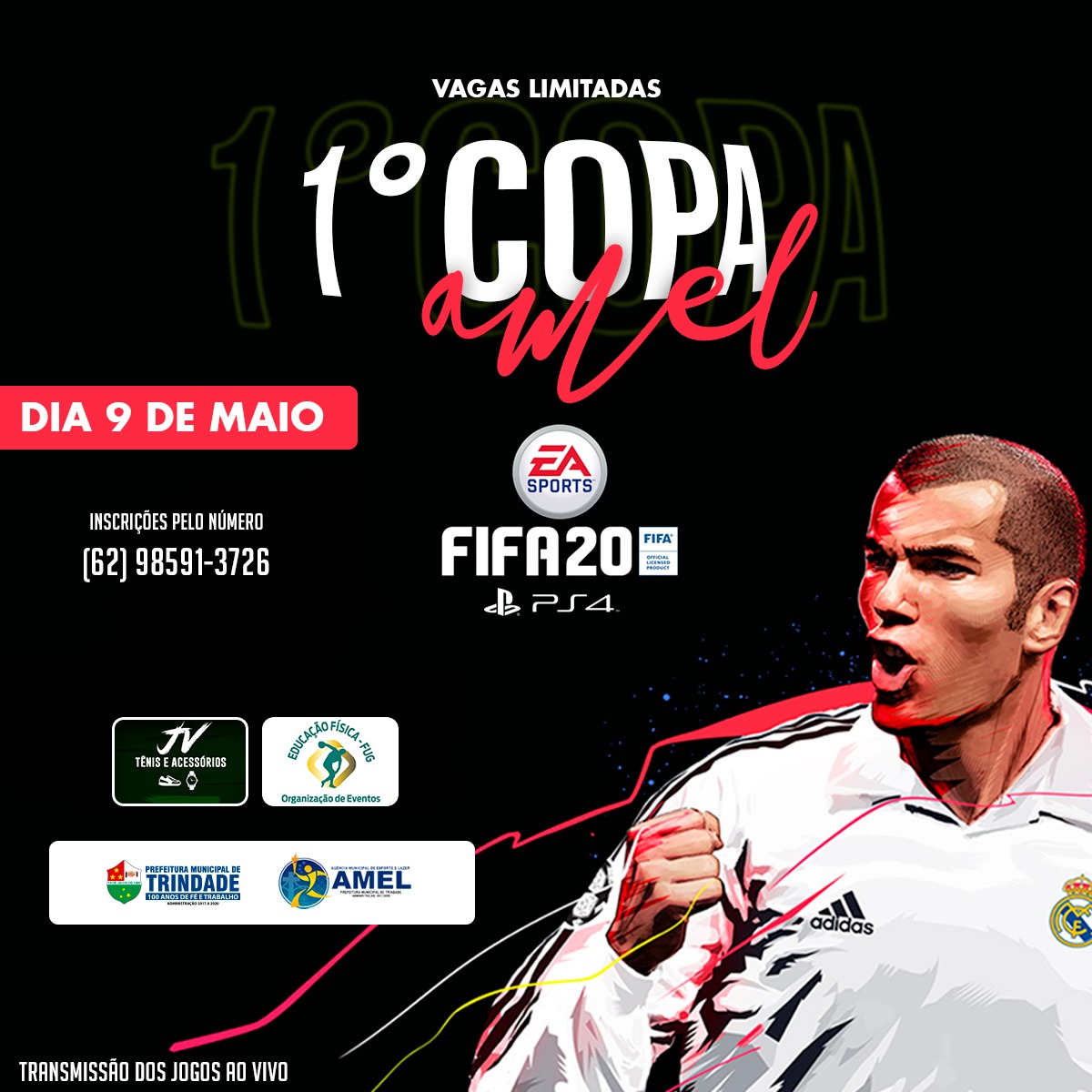 A Prefeitura de Trindade, por meio da Agência Municipal de Esporte e Lazer (Amel), presidida por Filipe de Castro, convida para primeira Copa Amel Fifa 20, no próximo sábado (09/05), às 14h.